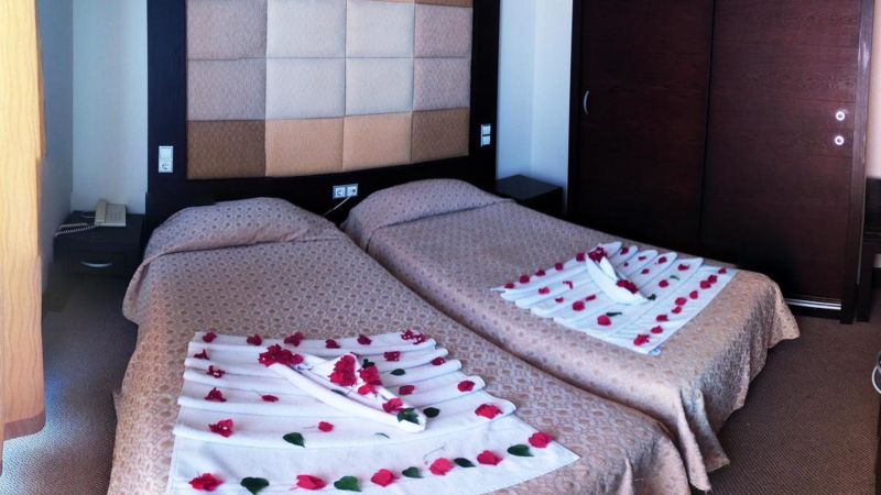 Это худший отель за все мои поездки в Турцию. Номера не убирали, максимум что делали, так это меняли одноразовые шампуни и на этом все. Белье постельное не меняли до тех пор, пока я не сняла его сама и не положила посреди номера... С полотенцами вообще отдельная история... За пятно на полотенце от краски для волос подняли такой хай, вплоть до моего выселения из отеля. Пришлось показать им как нужно стирать полотенца, без помощи машинки стиральной, замочив в раковине полотенце в белизне на 10 минут... Потом извинялись оставшиеся два дня... Еда оставляет желать лучшего( кроме баклажанов и огурцов с помидорами, соевых котлет выбрать было не из чего. Алкоголь... Его там нет. Вино разбавленное водой (все включено же), в общем это ужас))))) Кроме как поспать иногда делать там нечего..