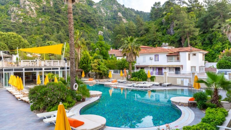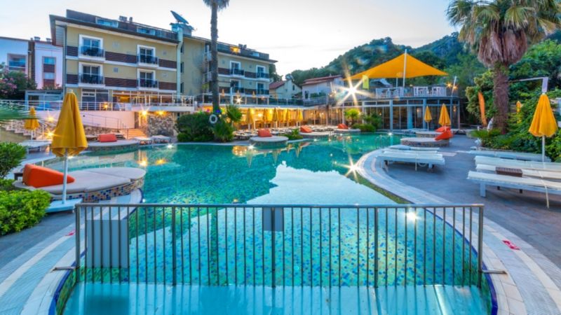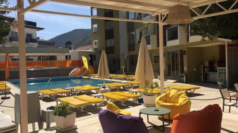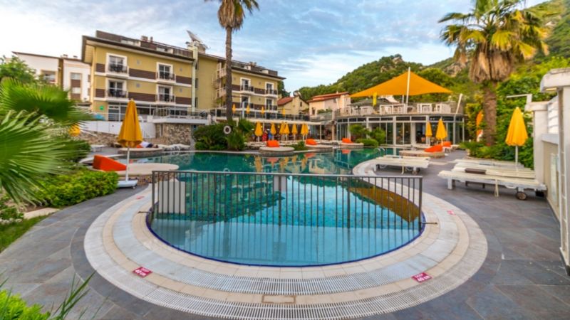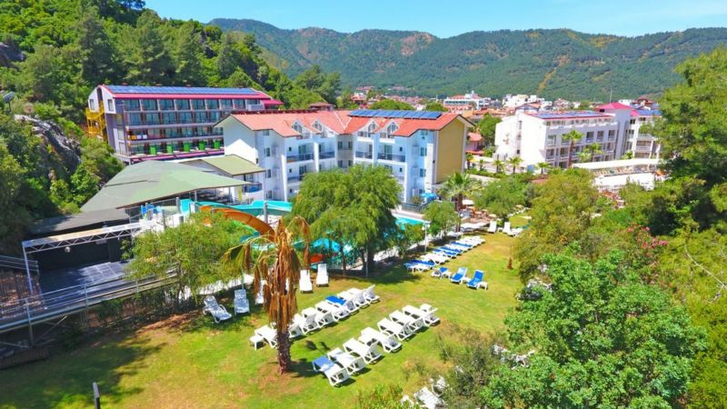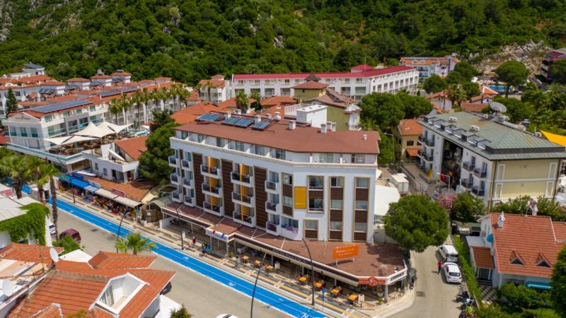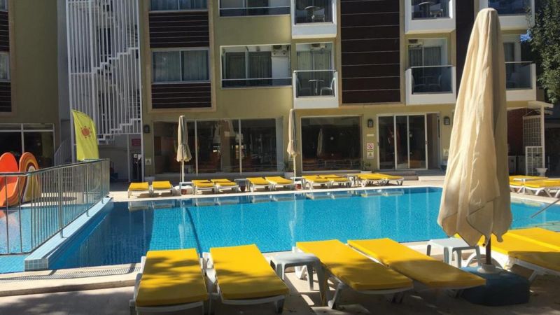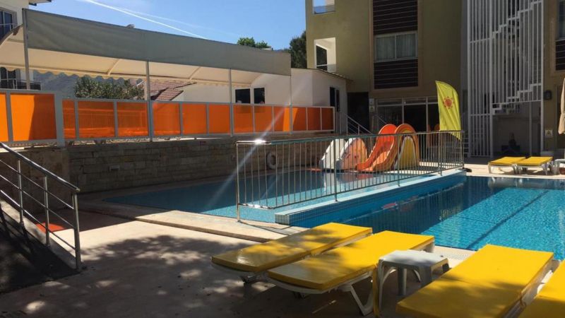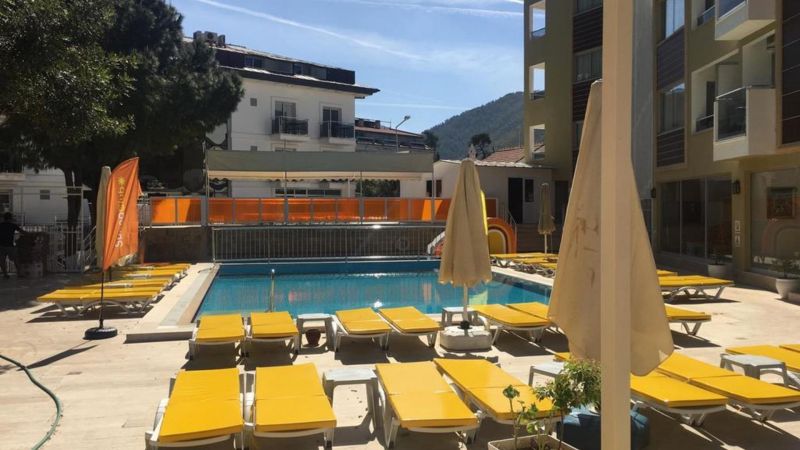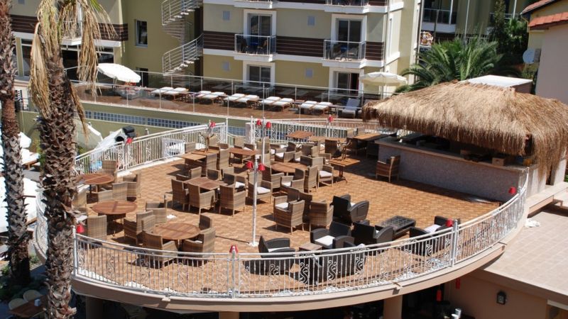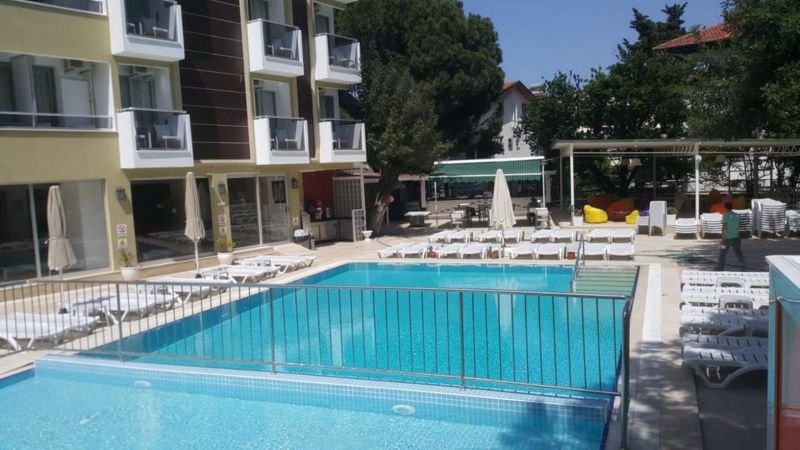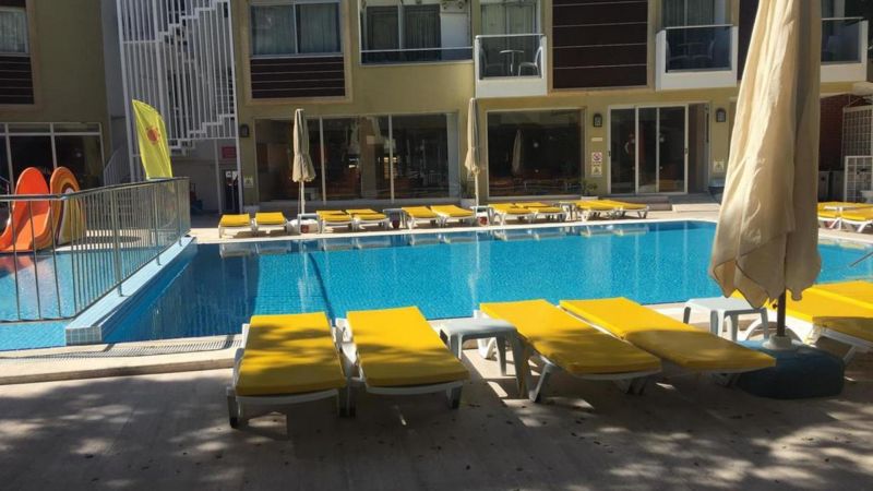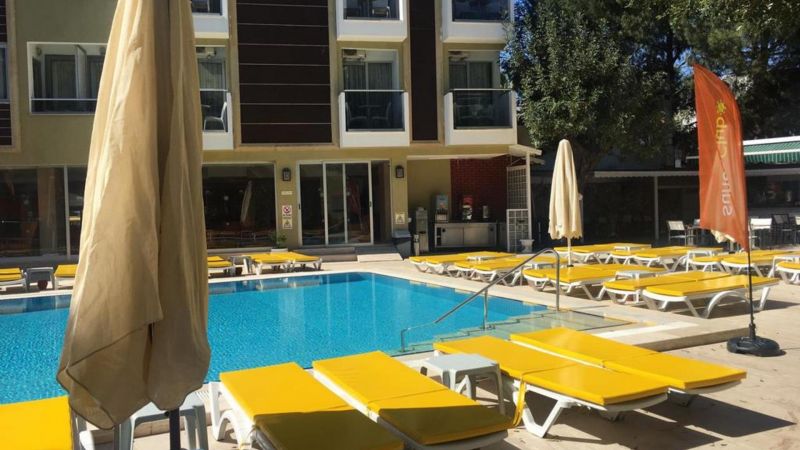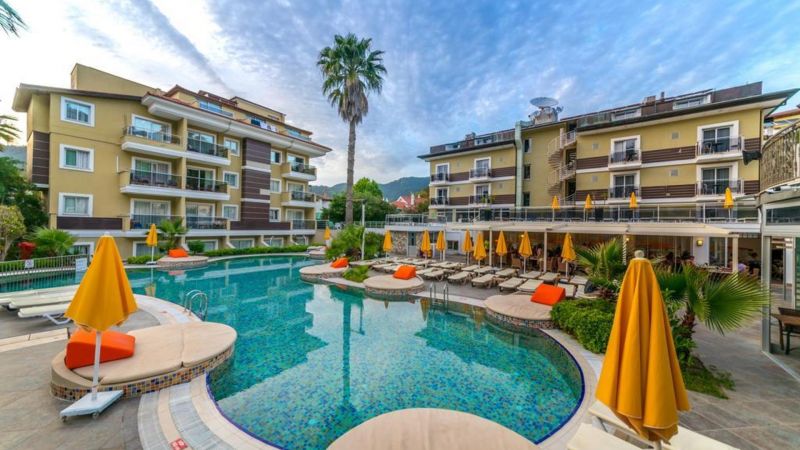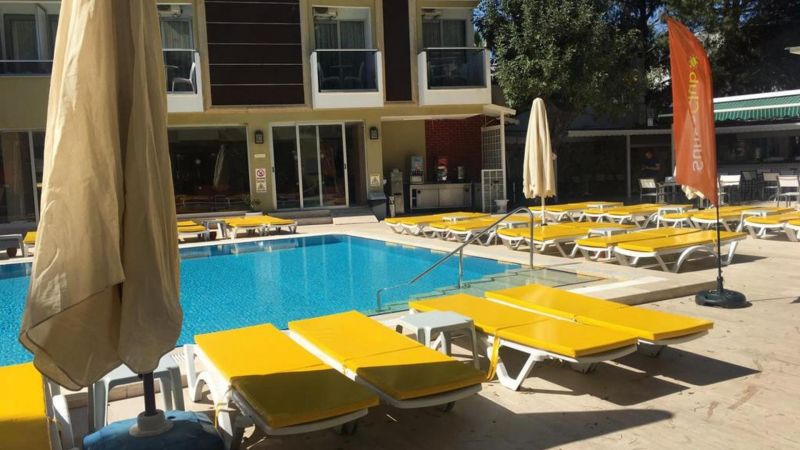 Отдыхали в Исмелере в сентябре. Отель ужасный. Несколько корпусов. То, что на картинке- не соответствует реальности. При заселении нам обьявили, что номеров стандарт нет. Повели в подвальный номер. Старый, с дыркой вместо телевизора в стене. Мы отказались. Еще две пары из Спб отказались тоже. Ругались, писали оператору Фан сан, требовали. Некоторым прямо с глаза предложили доплатить по 50-100 долларов для заезда в номера стандарт. Они, оказывается, были?! Ночь перетоптались в одном из ужасных номеров. На следующий день полдня потратили на перееезд в стандарт, который оказался прямо под крышей. Кондиционер у наших приятелей капал всю ночь, подставляли ведро??! Администрация игнорировала все просьбы об устранении неисправности. Питание безобразное! Где такое в Турции можно увидеть, что пища просто неприглядная. Куриные крылья, пережаренные, полуфабрикаты без вида и вкуса. Полное отсутствие фруктр! Арбуз, да страшные яблоки. В отеле отдыхают семьи турков, с большим количеством детей, англичане( пьющие алкоголь и орущие). Русских не так много. Уборка номеров почти нулевая! Обо всем нужно простить! Мой совет- в таком симпатичном городке ищете другие варианты размещения! Не понимаю, почему российский туроператор сотрудничает с этим отелем, прекрасно зная о том, что всегда такие проблемы!