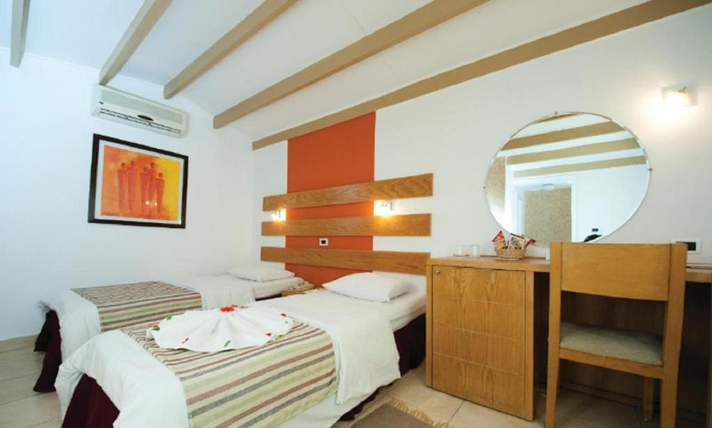 Отдыхал один в марте 2024 года.Отель тихий ужас. Номер дали на втором этаже над ресепшеном.Такое ощущение, что попал в советский санаторий в котором десятилетиями не было ремонта.За первые два дня комары в номере сожрали меня полностью.В итоге девушка русскоговорящая дала спиральку в номер от комаров.Вай фай только на ресепшен и очень слабый. Еду в столовке выдают порционно как будто украли. Даже кофе наливал араб как будто из своего кармана вечно недовольный. Пляж и море только хорошие были. Остальное фу. Не советую никому отдыхать в этом так называемом «отеле»В середине отдыха от сквозняка на ресепшене разбилась стеклянная дверь. Её так и не поменяли до конца моего отдыха.Короче просто страсть а не отель.Девушка гид которая по русски хорошо разговаривает просила написать отзыв положительный на топхотелс. Я написал всё как есть а она потом мне еще в вотцап такая недовольная пишет зачем вы так написали о отели. Я ей ответил что написал правду. Многие сотрудники просят оставить хороший отзыв об отели у отдыхающих((((