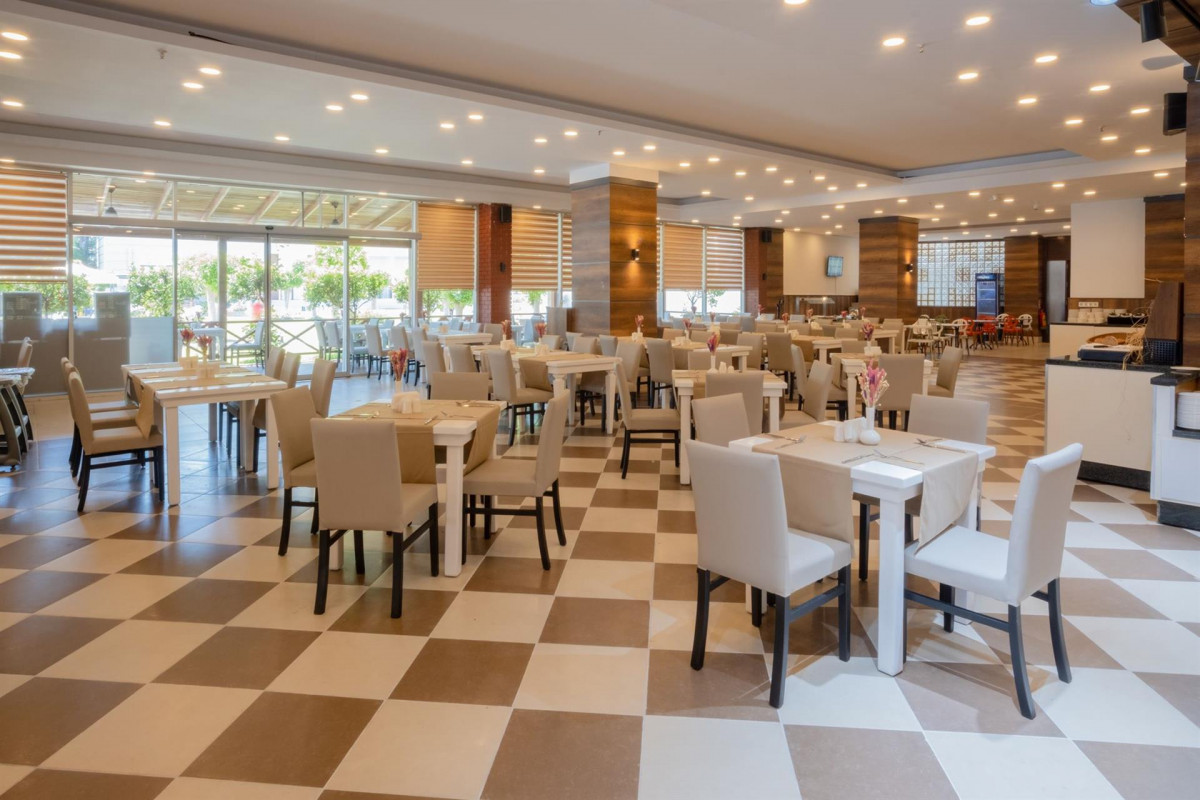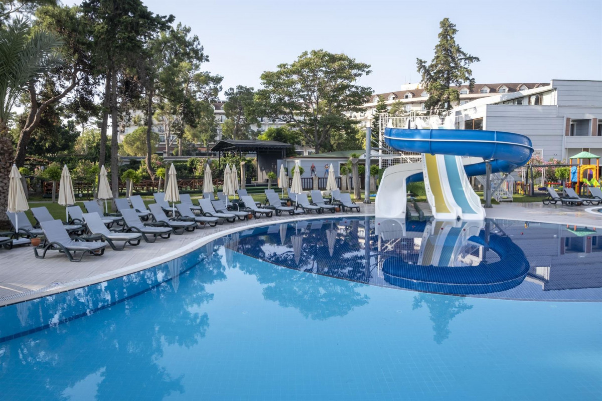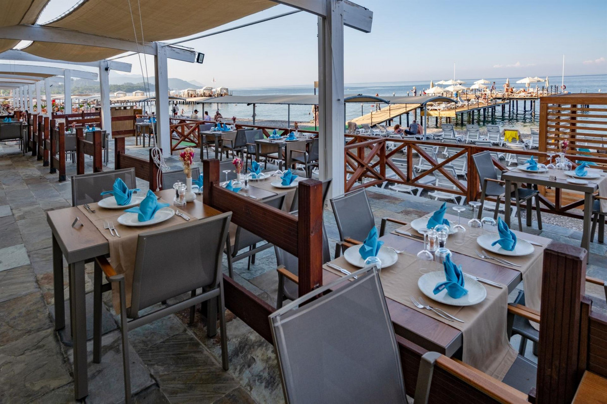 Отдыхали в данном отеле во второй половине августа 2025 года, данный отель нам очень понравился и мы будем рассматривать его еще раз в следующий раз. На входе в отель всегда стоит стол с напитками и сладостями для новых гостей отеля. По приезду в отель (8 утра) нам надели браслеты, проинформировали насчет заселения в номера и сопроводили на завтрак. Еда разнообразная и вкусная, всегда имеется мясо нескольких видов, рыба, десерты (торты, пирожные, хлопья и тд), свежие фрукты и овощи, а также разнообразные напитки. Сам ресторанчик имеет столики как в здании, так и на улице под навесом, чтобы отдыхающие могли поесть прямо под открытым воздухом. Персонал очень любезный и очень быстро убирает столы для новых посетителей. После завтрака и исследования территории отеля, примерно в 12 часов, нам сообщили, что освободился семейный номер и мы можем заселяться. Нас сопроводили до номера и помогли с багажом. Номер чистый и уютный, имеется всё необходимое для проживания (кондиционер, сейф, холодильник с напитками, фен и телевизор), и балкон, где можно провести вечер за столиком. Территория отеля небольшая, но имеется всё и для всех: горки, бассейны, пляжное кафе с мороженым и прочей едой, бар с прохладительными напитками, амфитеатр для анимации, детская площадка, много лежаков, гамаков и кресел, песчано-галечный пляж и пирс. Вход в море комфортный, из мелкой гальки, на берегу всегда находится спасатель, который контролирует ситуацию на воде. Шезлонги ни разу не были заняты полностью, всегда было свободное место. Помимо анимаций, в течении дня проходили мероприятия по водной аэробике, дартсу и вечером от отеля отправлялся челнок в клуб Кемера. В общем и целом – отель классный, чего только стоит вид с пляжа на горы) территория чистая и комфортная как для семейного отдыха, так и для пары)