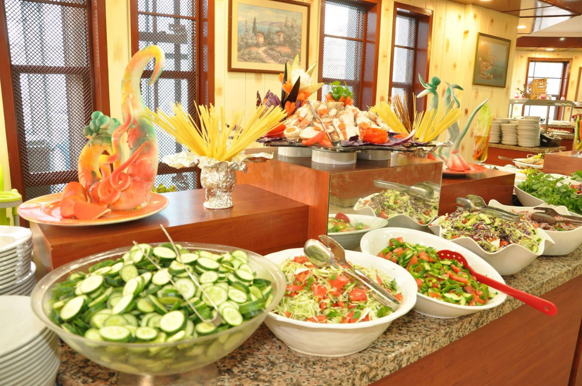 Отличный отель. Приехали поздно, по смогли после заселения ещё и поужинать. Специально для поздно приезжающих. Номер сразу не понравился. Очень маленький и темный, но утром обратились на ресепшен и очень быстро решился вопрос с переводом в другой номер. Хоть последний этаж, но большой номер на три человека. Администрация пошла нам на встречу, хотя нас было всего двое. Номер чистый. Уборка каждый день. Бельё и полотенца чистые. Полотенца для бассейна и пляжа получаете отдельно и можете менять хоть каждый день, получая после моря чистое и сухое полотенце. В трёх барах, расположенных в разных местах отеля, в двух ресторанах на этажах и одного в холле отеля алкогольные напитки и коктейли в основном местного производства, но в любом количестве. Нам понравилось. На территории собственного пляжа также находится бар, но только с безалкогольными напитками. Очень хорошо продуманная система отдыха на пляже. Бар, хорошие лежаки, небольшой душ и подземный переход под дорогой через тоннель прямо на пляж. Заход в море затруднён из-за выступающих со дна скальных пластов, но взрослым людям можно приспособиться заходить в море. С детьми большая проблема. Дети в большинстве своём больше плескались в прекрасном бассейне рядом с баром и водной горкой. Питание прекрасное. Разнообразие блюд и качество пищи просто изумительное. Восточные сладости в таком разнообразии и вкусах, что словами просто не описать. Очень дружелюбный и отзывчивый персонал оставил у нас прекрасное впечатление об отдыхе в этом отеле. Решили, что теперь на следующий год только сюда. Хочется всему персоналу сказать огромное спасибо за прекрасный отдых и пожелать всего самого наилучшего за их заботу и внимание. Отдыхали в середине сентября 2019 г.