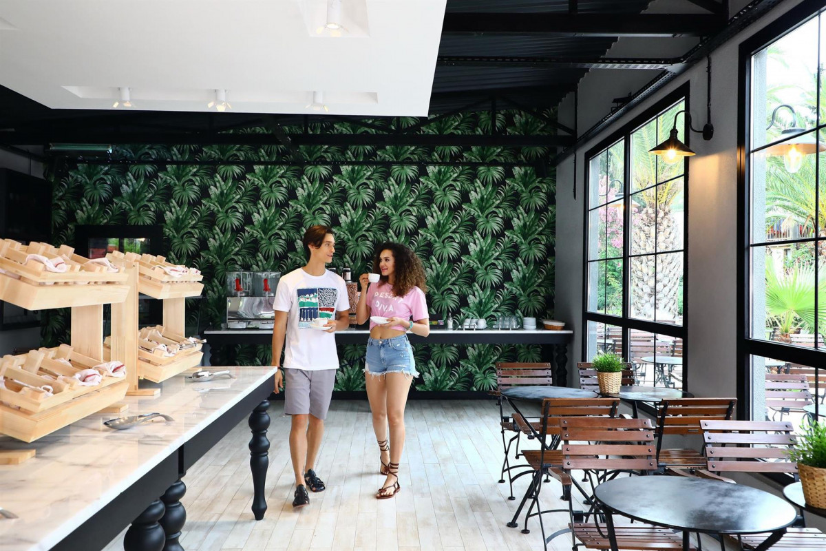 Отличный отель 18 плюс. Красивая и зеленая территория состоящая их 2х-этажных домиков. Вайфай отлично работал на всей территории. Современные номера в стиле лофт, меня только туалет смутил - это прозрачная кабинка по соседству с душем. В номере у нас было тихо ночью, никакой музыки не слышно, жили ближе к ресепшену. Уборка хорошая. Завтрак по системе шведский стол, накладывают официанты. Обед и ужин по меню, сканируешь QR-код и выбираешь блюда, приносят всё очень быстро, красивая подача) В отеле немного народа, никаких проблем с лежаками и очередями. В баре местный и импортный алкоголь, делают вкусные коктейли. Устраивают классные тематические вечеринки, каждый вечер танцевальное шоу. Отель находится в оживленном месте, есть куда сходить погулять. Мы остались очень довольны, никаких минусов для себя не обнаружили)