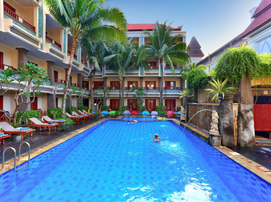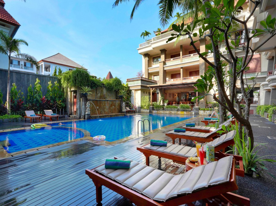 Бутик -отель The Vira Bali в Куте предлагает сочетание балийского очарования и удобного расположения в центре города. Лучшие магазины, рестораны и ночные клубы находятся поблизости, не говоря уже широком песчаном пляже расположенном всего лишь в 7 минутах ходьбы от отеля. 4-х этажный бутик-отель был открыт в 2004 году, насчитывает 56 номеров оформленных в современном минималистском дизайне. Номера хорошо оборудованы и предлагают все необходимое для комфортного отдыха. Тропический сад на территории отеля усеян деревьями жасмина и кокосовыми пальмами и окружает центральный плавательный бассейн. Небольшие водопады и фонтаны создают эффект журчания проточной воды, что придает дополнительное спокойствие атмосфере отеля.