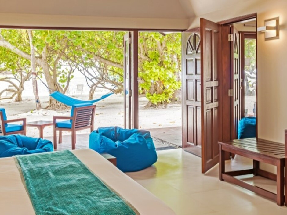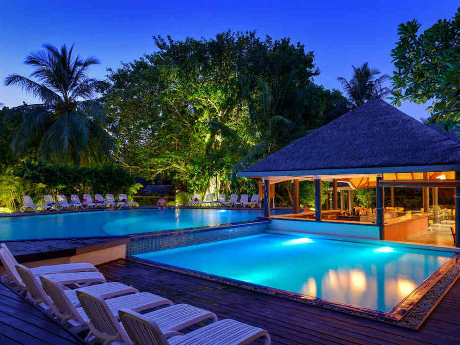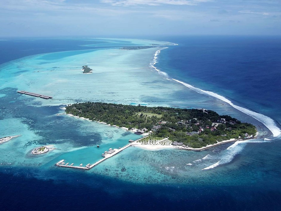 Размеры острова: 800 x 400 м. Отель состоит из комплекса пляжных и надводных вилл.
