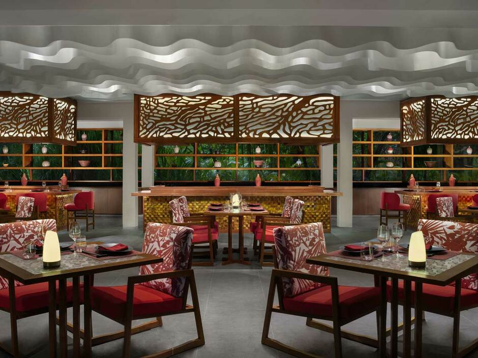 К размещению предлагается 67 бунгало над водой или у воды. Отель принимает к размещению гостей от 18 лет.