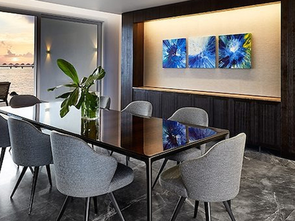 Отель расположен на двух островах — Rangali Finolhu (600 x 300 м) Island и Rangali Island (750 x 70 м) в атолле Южный Ари, в 90 км от международного аэропорта Велана (г. Мале). Трансфер: 30 минут на гидросамолете (с 06:00 до 16:00) или 20 минут на самолете внутренних авиалиний (с 16:00 до 22:00) до аэропорта Маамигилли + 30 минут на скоростном катере до отеля.