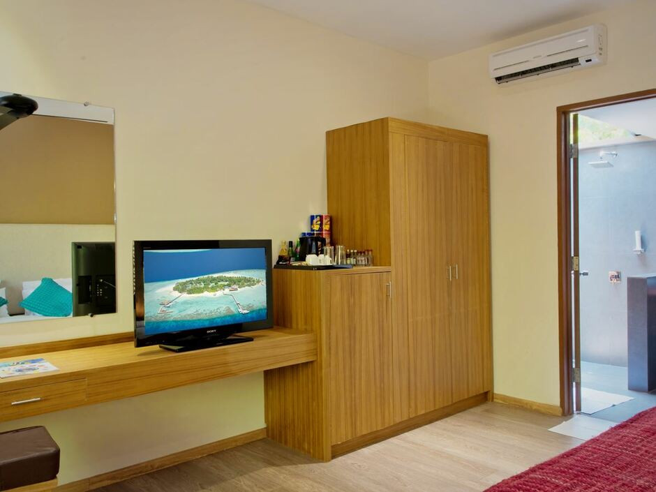 В атолле Северный Мале, в 42 км от международного аэропорта Хулуле (г. Мале).