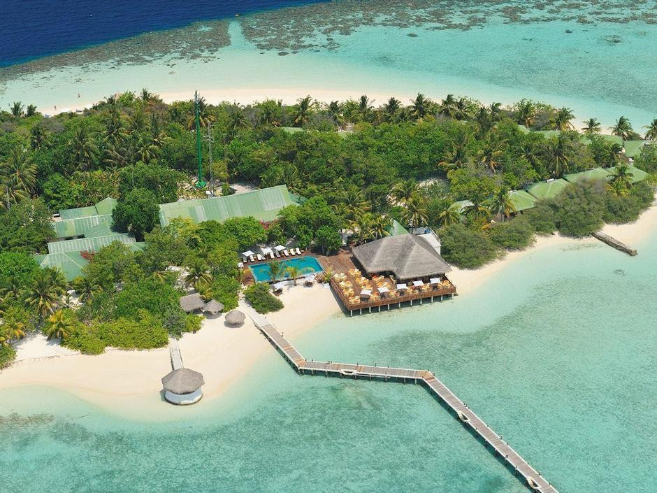 Бюджетным его не назову, но действительно старенький отель, с прекрасным пляжем! Очень маленький и уютный островок, уединение и релакс, если вы реально устали и хотите тишины и покоя это 100% вам подойдет! Риф живой, много акул ската и рыбок прям у берега ребенку очень понравилось.