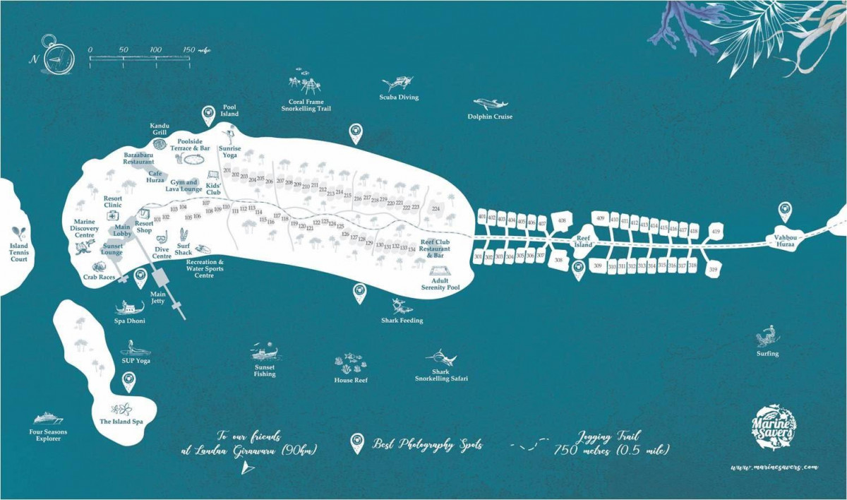 На острове Куда-Хураа атолла Северный Мале, в 20 км от международного аэропорта Велана (г. Мале). Трансфер: 30 минут на скоростном катере (круглосуточно).