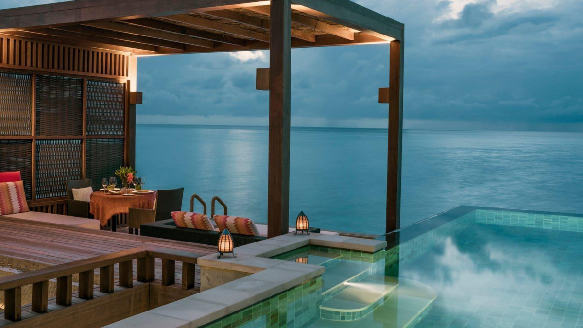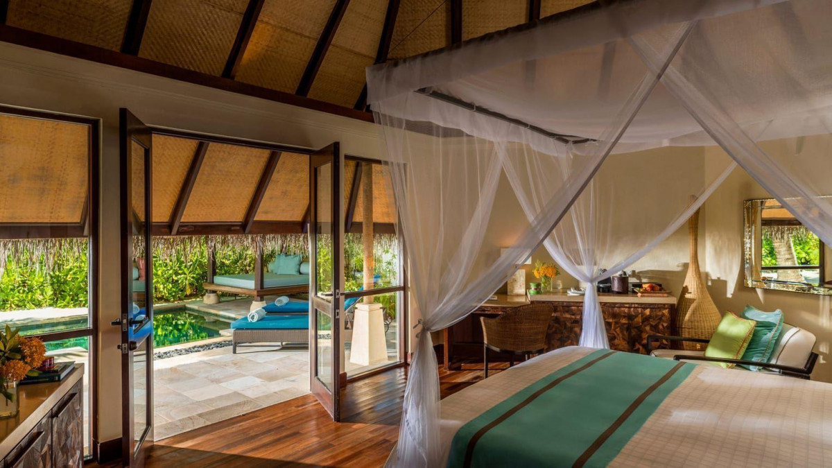 В отеле 96 береговых и водных бунгало.