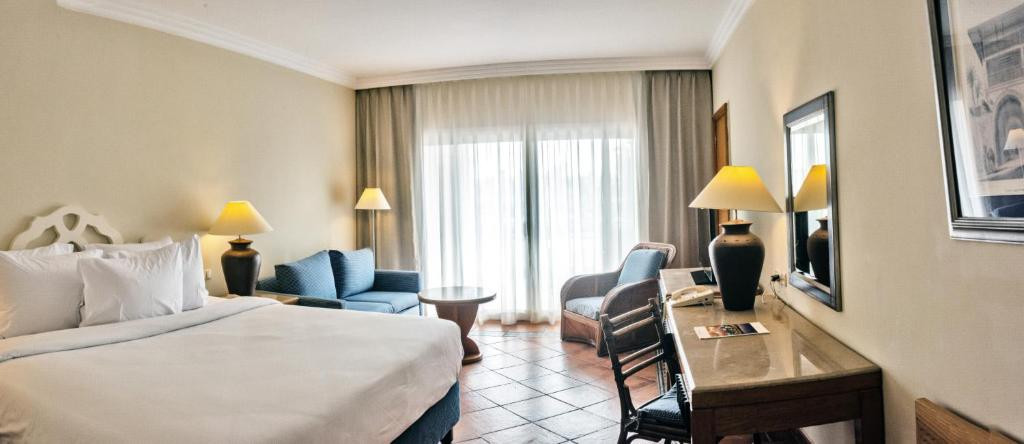 Из плюсов: пляж. с детьми отлично, вход - песок. Можно без обуви. Тут же есть рифы с живыми кораллами и множеством рыб. Если едете исключительно за морем, то пляж супер. Территория большая. Симпатичная. Много бассейнов, можно найти место для отдыха по вкусу. Мальчики на бассейнах реально следят за детьми. Белье чистое, полотенца норм. Из плюсов все… Реальная ситуация такая: грязно…. Очень грязно. Везде. Вот прям везде…. Начиная от входной двери стеклянной, заканчивая номерами. В общий туалет без сильной нужды лучше даже не заглядывать. В столовой (они называют это рестораном) находиться не очень приятно. Все по той же причине - грязь. Салфетки по одной в руки (если хватит), ложки брать с соседних столов, если найдешь. На территории по несколько дней лежат стаканы тарелки, валяются бычки, мусор, лопнувшие шарики с вечеринки не убирали. Видимо со временем их просто сдуло по углам ветром. Номера очень уставшие, но при нормальном сервисе это то, что можно пережить. Но… сервиса НЕТ. Его нет реально, и это не какие-то капризы, а элементарные вещи, которые должны присутствовать в отелях 5 звезд, например вода в барах, обычная и минеральная. Да, кроме колы и фанты в баре может быть НИЧЕГО. Мороженое (фруктовый лед) в определенное время просто кладут в морозильную камеру на главном бассейне. Внимание: не пополняют и не раздают. Ребёнку достать это мороженое просто нереально. Я взрослый человек просто переваливалась через бортик морозильника, чтобы вытащить остатки мороженого со дна. В общем побывали на этом аттракционе один раз и все… больше мороженое не ели. Ходили в рестораны алякарт, восточный за ширмой от столовой. Еда такая же, что и на раздаче. Плюс в том, что не сидишь в этом свинарнике и приносят напитки. Итальянский, есть под открытым небом на территории соседнего отеля. Там очень приятно посидеть с видом на море. Еда норм. Еще один очень большой минус - это отдыхающие арабы…. Ведут себя как свиньи. Смотреть противно. Конкретно тут их много. В общем, если вы привыкли к сервису, то точно не сюда. Если хотите море и только море, то можно потерпеть и в номере просто спать, а весь день проводить на пляже.