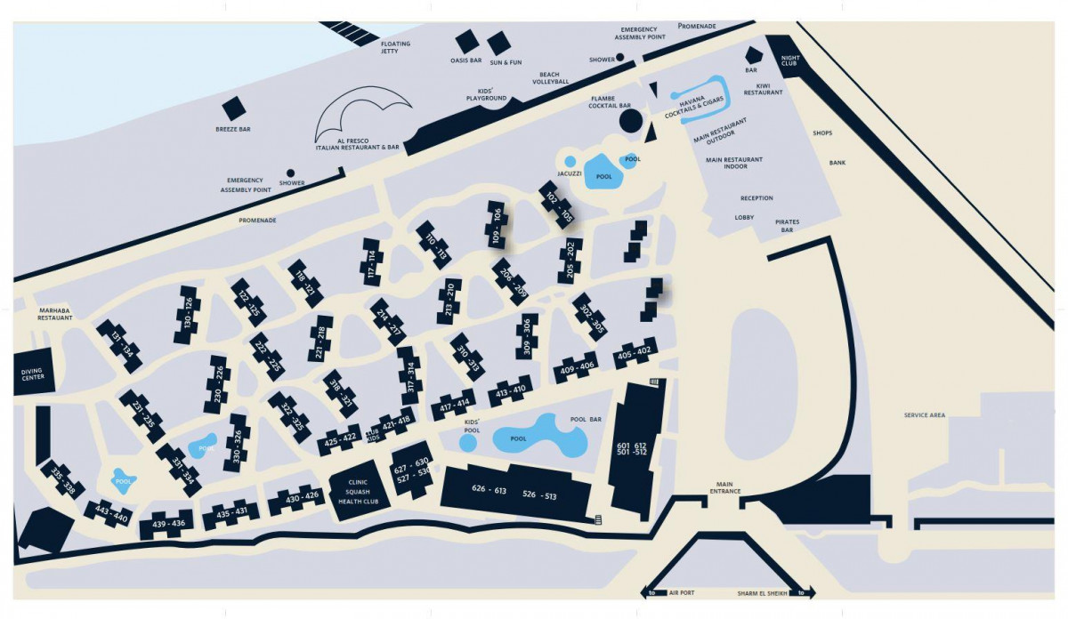 Отель расположен на первой береговой линии в районе Наама Бей, в 12 км от аэропорта города Шарм Эль Шейх.