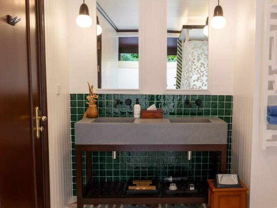 Отель представляет собой комплекс из 150 вилл на берегу Индийского океана. Недалеко от острова располагается крупнейшее место для кормления манта-скатов.