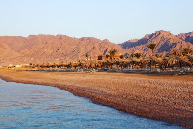 В 144 км от аэропорта Шарм-эль-Шейха, 120 км от аэропорта Таба, на первой линии.
