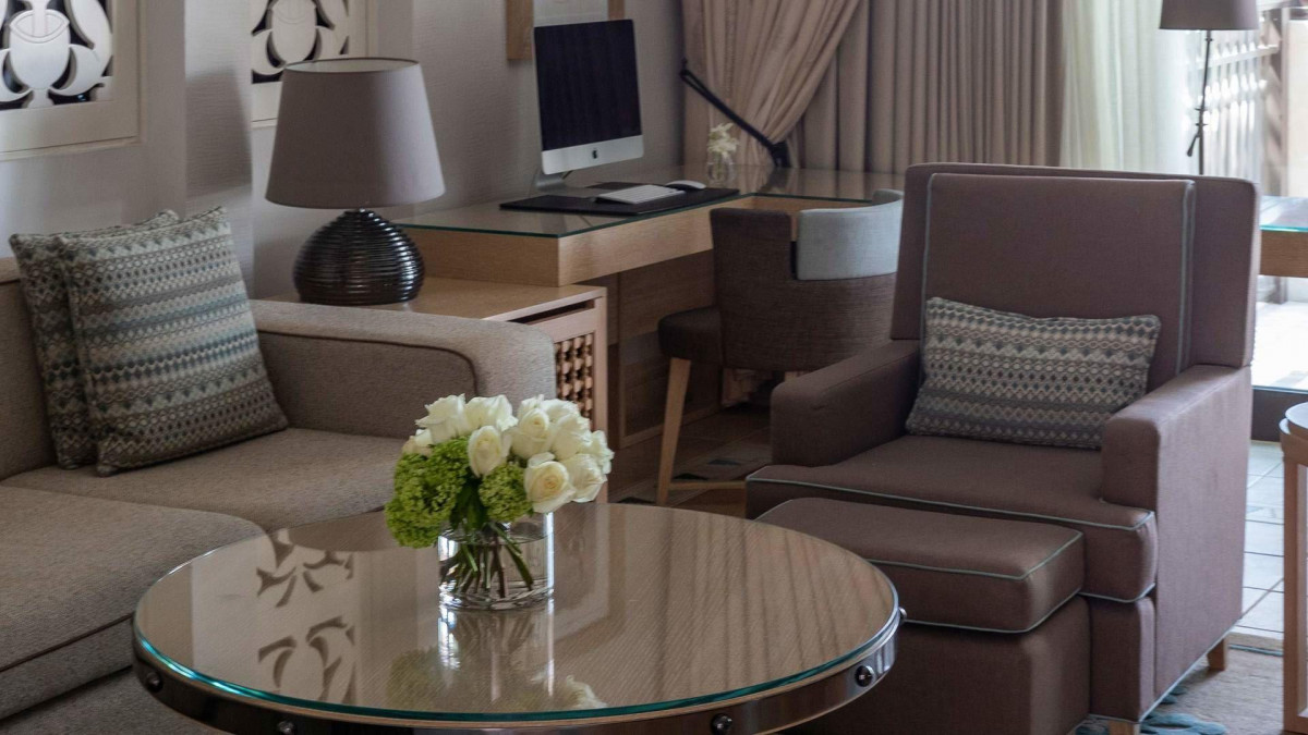 - Gulf Summerhouse Ocean Suite (спальня и гостиная, с видом на Персидский залив и пляж, 2 балкона, кровать king-size, макс. 3+1 чел., 135 кв. м., привилегии Dar Al Masyaf Summerhouse и привилегии Suite)