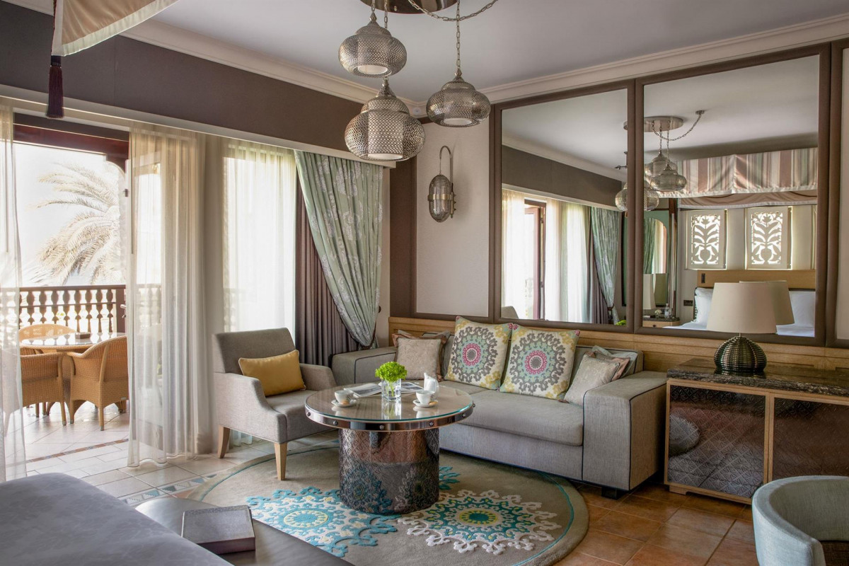 - Arabian Summerhouse Arabian Suite (спальня, гостиная и обеденная зона, 2 балкона, кровать king-size, макс. 3+1 чел., 135 кв. м., привилегии Dar Al Masyaf Summerhouse и привилегии Suite)