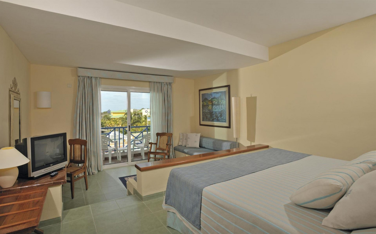 Отдыхал с Женой в июле 2024 года 11 ночей... Отель для Кубы конечно не самый шикарный, но друзья отдыхали дороже в соседнем 5* и номера были такие же. Жили в бунгало, трехэтажные корпуса ближе к морю и бассейну. Номер большой с шикарной кроватью, все бедненько, но чистенько, кровать шикарная - очень большая, есть свой балкон на котором можно курить... Минибар входил в стоимость, но пополняли его парой банок пива и водой. К удивлению был только шампунь и гель для душа, маленький кусок мыла, а зубной пасты не было - с собой не взяли, а купить негде... Оставляли всегда уборщице доллар на чай и было всегда все чисто. Бар в лаундже круглосуточный, у бассейна и на пляже - дневной с 10.00, алкоголь дорогой и качественный, в дьюти фри даже не надо ничего брать - все нальют в баре. Еда простенькая, но жарко есть не хочется, на пляже готовят бургеры и ход доги иногда хватало их... Ели не больше двух раз в сутки и хватало. Алкоголь, сигареты и сигары можно купить прямо на пляже - ходят ходоки и продают, качество хорошее, а цена меньше чем в магазине и дьюти фри на порядок, расплачивались на пляже наличными долларами, которые привезли мелкими купюрами, но можно на ресепшене так же баксы разменять. В целом все понравилось и заказали тур на апрель 2025 года - поедем туда снова, прекрасно, что 16 и в основном Канадцы, Испанцы и Кубинцы отдыхают, Русских тоже много... Через туроператора заказывали индивидуальную экскурсию на яхте прямо в отеле на 4-х человек - вообще шикарно... Дельфинарий, Карибское море, рыбалка, лобстеры выловленные и сразу приготовленные, короче культурная программа насыщенная, в апреле собираемся посетить Гавану, все можно заказать тоже в отеле...