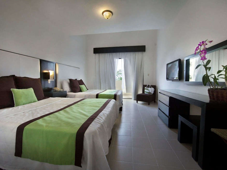 Все понравилось. Очень удобно, что морские экскурсии из самого отеля: намного дешевле и главное (!) никуда ехать не надо, только дойти до местного пляжа, единственное надо знать хотя бы английский, лучше испанский. Персонал вполне хорошо разговаривает по-английски и всегда помогает. Только с русским будет наверное сложновато, его там не знают. В отеле работает анимация, морские развлечения (каяки, катамаран, доска с веслом). Территория большая, чистая, уточки бегают, 2 варана, фламинго, черепахи. Еда мне понравилась (но только в 4* ресторане, в 3* очень мало мяса): просто приготовленная, минимум соли и специй, много мяса, рыбы, креветки гриль, овощи, паста (при тебе готовят). Люблю простые продукты. Из фруктов: арбузы, ананасы, маракуйя, дыни, вкусные. Десерты ужасны. Номер не очень новый конечно, особенно по сан узлу заметно. Уборка средняя, оставляли иногда несколько долларов, помогало. Есть москитная сетка, удобно, тк комары на улице летают. В оплату включены 5 ужинов в тематических ресторанах, но надо записаться заранее, но не везде прям вкусно и детям сложно выбрать подходящую еду (меню, кстати, на английском) В общем нам очень понравилось! Если очень важен номер и его новизна нет знания языка, то имеет смысл подумать, остальное прекрасно.