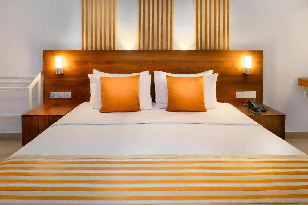 Прилетели мы ночью, заполнили карты въезда это очень быстро, и отправились в номер, номер был с видом на море правда брали стандарт и не чуть не пожалела, нет фена сразу напишу для девушек) чтобы не было вопроса но подойдя на утром на ресепшен по просьбе вашей вам дадут фен, так же брала утюг все бесплатно и кстати кому нужно переходник тоже бесплатно, номер уютный чайник вода кофе чай сахар были всегда зато люблю Азию))) убирались чистенько каждый день иногда даже говорила что не нужно, полотенца меняли по просьбе, территория не большая два бассейна. Выходя из ворот попадаете к океану))) из рядом местного города Негомбо в океан попадает мусор .. и вся эта печаль была часто у берега, но все убирают, но можно поехать в другую часть Шри Ланке там уже будет чище) здесь плюс этого отеля если вы приехали отдыхать и не заморачиваться с экскурсиями от аэропорта 20 мин)) ездили конечно Сигирей он обязательно)) вы не будите равнодушным к этому чудо , брали такси у нас был чудесный водитель он так же говорит и понимает по русски ) было плюсом такси выходило 100 баксов но если еще найти пару тройку человек то будет вам дешевле ) ну вроде все ! в этот отель можно вернуться ! Чуть не забыла, про завтраки рассказать, ооочень разнообразно и вкусно! На выбор 5 блюд Есть омлеты,блины,рис,рыбное или куриное карри,бобы,сосиски и тд., в отдельной комнатке за стеклом, салаты,нарезка сыр и колбаска, фрукты (банан,ананас,папая,арбуз) Чай,кофе,соки и куча выпечки. Голодным никто не уйдет, все очень вкусно и всего много. Единственно забудьте про кофе, он не совсем вкусный, пейте цейлонский чай.