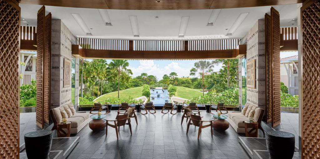 Шикарный отель и сервис. Просторные, современные номера. Мы заказывали номер с мини-бассейном (plunge pool) и просили, чтобы нам дали номер с топчаном в саду (кровать под навесом из ткани). Топчан надо просить заранее, тк не все номера с plunge pool имеют топчан на территории. Обычно там стоят 2 лежака. Сама территория отеля очень красивая и ухоженная, везде красивые деревья, тропические кусты и цветы. Огромный выбор еды. Каждый раз, когда мы ходили на завтрак или ужин, я думала-куда они девают всю оставшуюся еду. Все свежее, красиво преподнесено. Хорошая посуда. Все идеально чисто. Если вы пойдете на воскресный буфет, вас приятно удивит секция дессертов. Такой красоты и разнообразия я не видела ни в одном отеле. Персонал очень приветливый, все пытаются сделать ваш отдых комфортным. Пляж чистый, никаких водорослей и мусора. У пляжа есть ресторан с комфортными диванами и креслами. Цены недорогие (такие же, как везде в Америке). Бассейны чистые, есть бассейн для детей. У бассейна для взрослых -красивые большие беседки под навесами. Их надо занимать пораньше с утра (часов в 6.30-7). Если просто оставите свои вещи и "уйдете по делам", ваши вещи унесут к смотрителям территории. Надо, чтобы постоянно кто-то находился в беседке. Мы обожали эти беседки, отлично защищают от солнца и в них удобный, мягкий матрас. Брали пару экскурсий. Кстати, на Бали распространено, что туристы просто нанимают себе гида и он вас возит куда хотите. Много гидов говорят по-русски. Нанять гида-недорого, некоторые брали всего $70-100 за весь день. Мы всегда больше денег им оставляли, тк люди работают практически на износ (и бензин дорогой). Гидов можно найти в инстаграме. В целом, отдых на Бали был великолепный. Мы выходили с территории отеля погулять по Нуса-Дуа. Все очень безопасно, много полицейских. Чтобы зайти или проехать на территорию отеля, надо пройти полицейский блок-пост (это быстро). Они кого попало не пускают. Вообще, мало народа гуляет вне территории отелей, идете-и как все для вас. За территорией отеля тоже все чисто, красивые фонтаны по дороге. Мусор нигде не видела. Если еще поедем, обязательно поедем в Софитель. Замечательный отель, рекомендую!