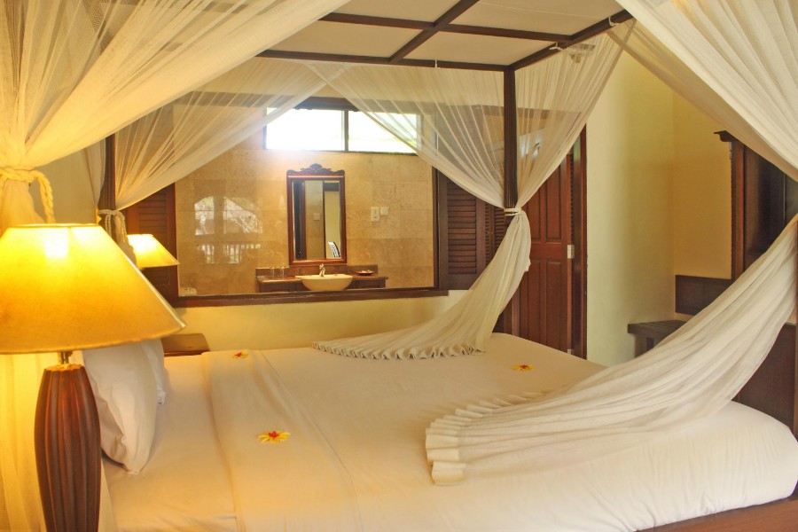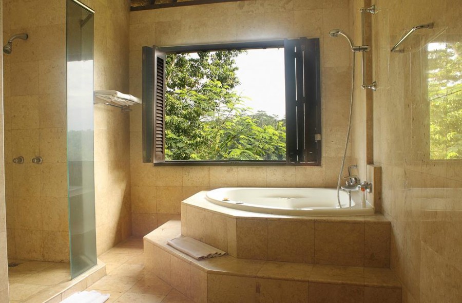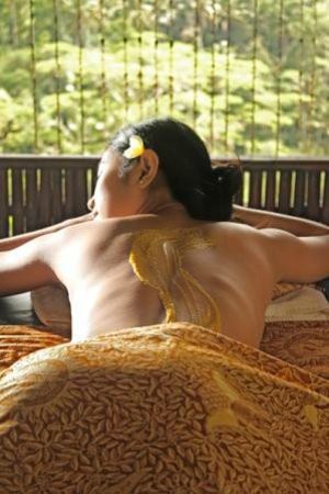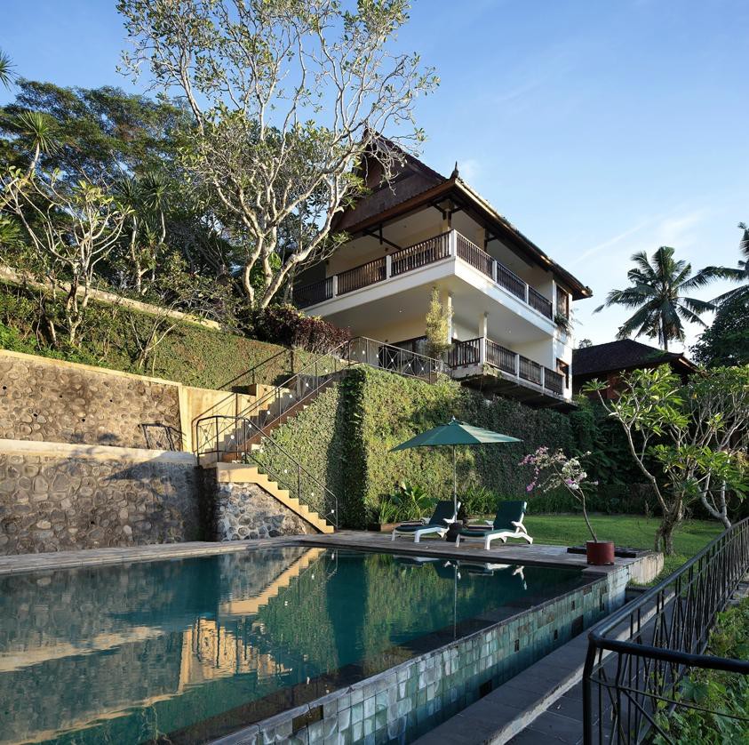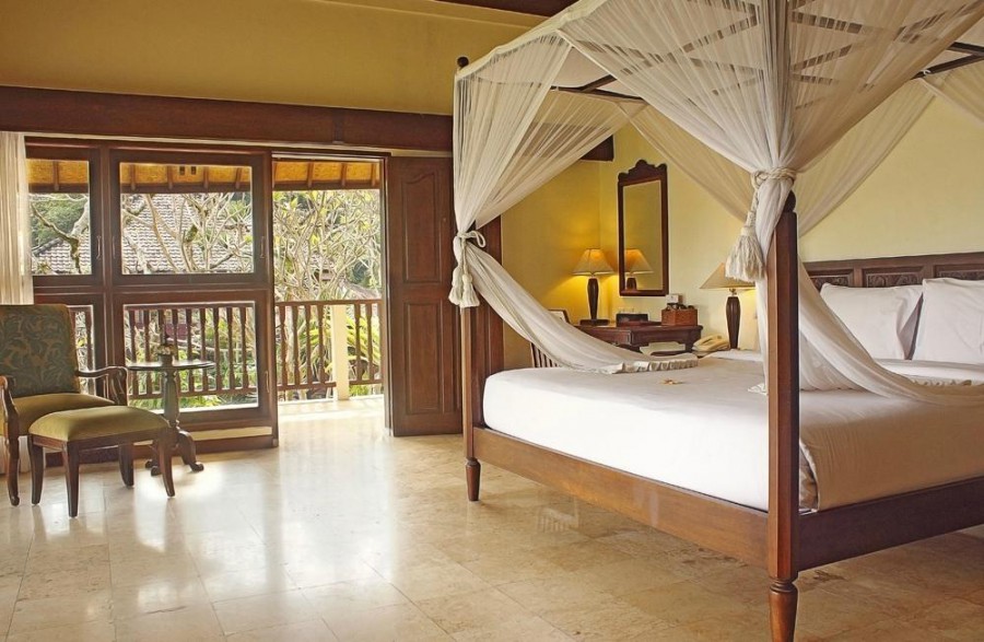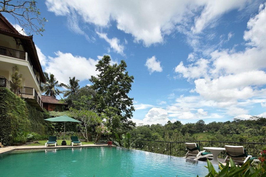 в Убуде, в 45 минутах езды от аэропорта, в удалении от моря среди рисовых полей.