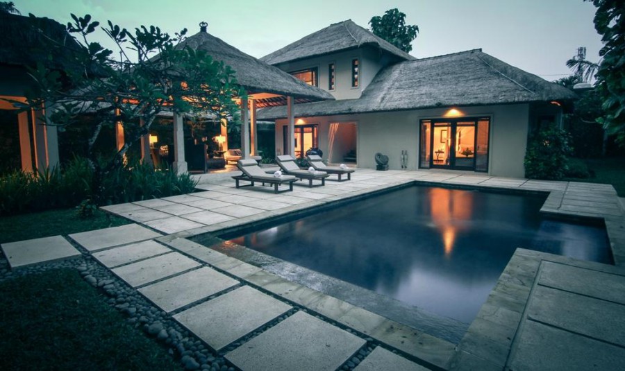 на курорте Санур, в 45 км от аэропорта, в 2 км от пляжа.