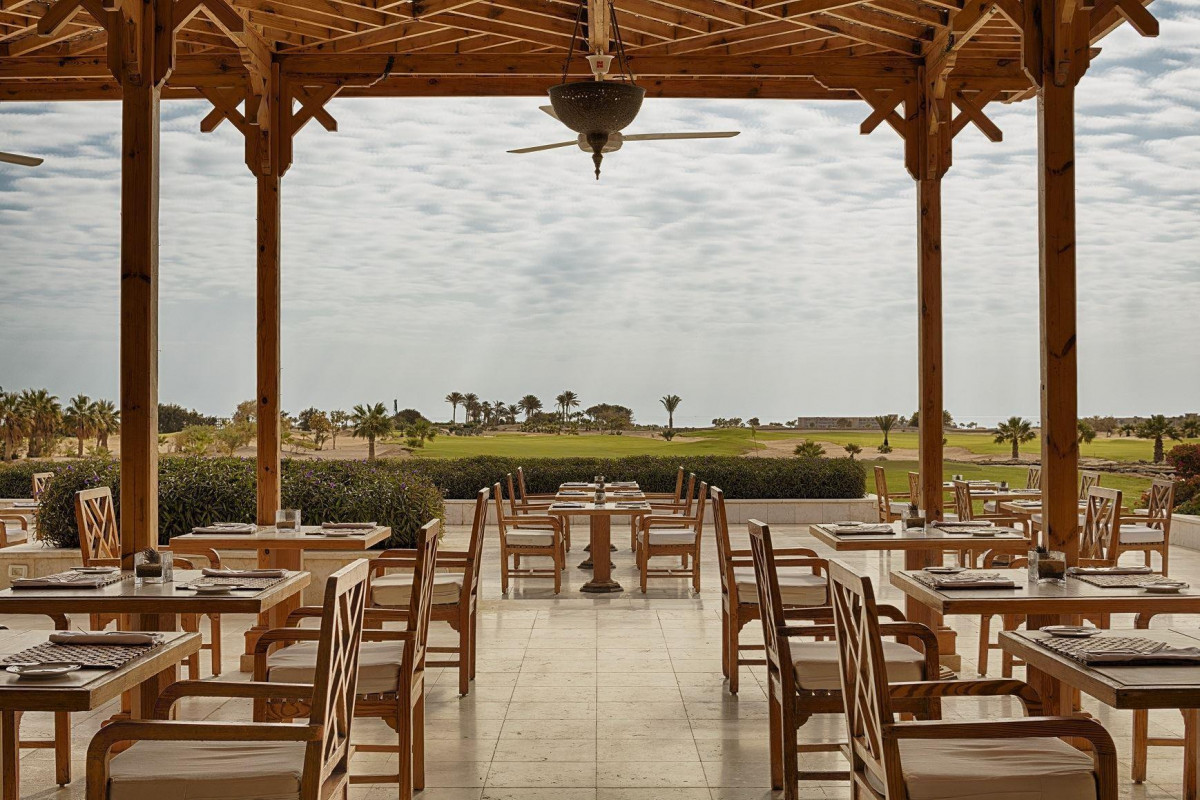 Отдыхали с ребёнком 11 лет с 24 октября по 4 ноября 2021 по системе все включено. Отель очень понравился, шикарный, все в мраморе, светильники из натурального камня, номера огромные, все есть для комфортного размещения, кровати очень удобные, постельное белье класса люкс, уборка качественная, мини-бар пополняется каждый день соком и газировкой, есть тапочки и халаты, кондиционер расположен удобно, на кровати не дует. Шкаф вместительный, там же находится гладильная доска и утюг. Питание свежее, отлично приготовленное. Завтрак и ужин шведский стол, обед по меню, за обед и напитки в течение дня подписываешь нулевые чеки. Обслуживание вежливое, персонал исполнительный. Пляж большой, ехать минут 7, пешком не дойти, шезлонги расположены далеко, бич бой приносит полотенца, заправляет их. Пляжный бар работает оперативно, особенно в обед, когда много народу приходит обедать одновременно, за чаевые улыбки становятся более радостными! Напитки качественные, прекрасный бар с видовой террасой на верхнем этаже около ресторана. Персонал говорит на английском, французском, по-русски никто не говорит, но помогает переводчик. Территория большая из-за гольф полей, но мы не гольфисты, оценить не можем. Вечером поёт певица в баре на 1 этаже, или классическая музыка звучит. Анимации никакой нет, скучно. Мы гуляли вокруг отеля, за территорией - пустыня. Поздно узнали, что из отеля можно заказать авто и отвезут на марину, потом не позднее 22.00 из магазина позвонить в отель и машина приедет за нами, то есть можно было погулять по променаду около пляжей. Хоть какое-то развлечение. В СПА не ходили, гид сказал, что из-за пандемии закрыто. Отдых получился релакс. Русских процентов 5, в основном англичане и французы, все доброжелательные, улыбаются.