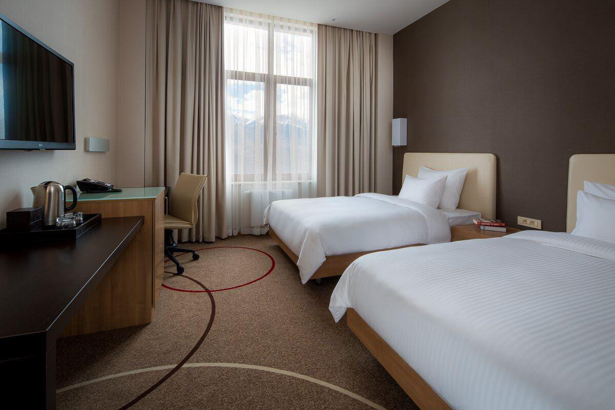 На четвёрочку по состоянию номеров не тянет. Скорее 3 . В ванной штора с вырванными кольцами) за зеркалом подсветка мигает. В номере почему дверь в соседний номер - да, она закрыта, но сами понимаете как это влияет на слышимость)) Но в остальном даже 6 поставила бы!) бассейн, 2 сауны, хамам. Релакс комната - это отдельный восторг. Как только пересекаешь порог, просто таешь от расслабления. В общем, спа-комплекс на высоте. Из-за пандемии всё по записи, то есть ограничивается количество человек на вход в течение часа. Но это даже плюс - людей мало, всем хватает места. Завтрак - самый роскошный из всех что я встречала. Тут тоже 5 . У нас было 3 завтрака за время отдыха - весь ассортимент попробовать не успели, учитывая что мясное не ем (из мяса там вроде бы бекон, нарезки, сосиски, может ещё что-то, не знаю). Кофе очень мощный. ) чай - хочешь пакетики, хочешь - в чайничке заваривай, на выбор 6 сортов, кажется. А сам завтрак перечислять смысла нет)) ещё столько же текста получится. В общем, отдыхом довольны. Единственно, очень опечалил вид из окна. Совсем не соответствовал названию отеля - окна соседнего здания. Никаких тебе гор и видов. Но мы в номере были только вечером, так что норм. К тому же хорошим видом можно полюбоваться из тренажёрного зала)