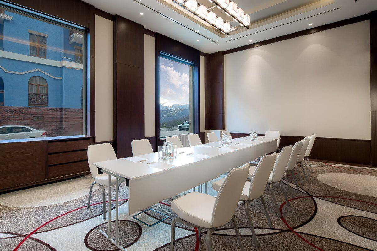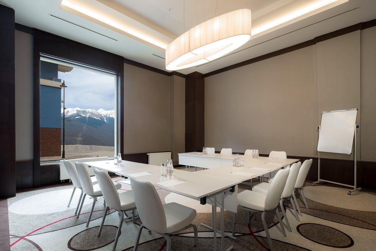 Отель располагается на высоте 960 метров над уровнем моря, в верхней части курорта «Горки Город» в Красной Поляне.