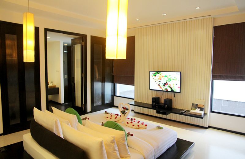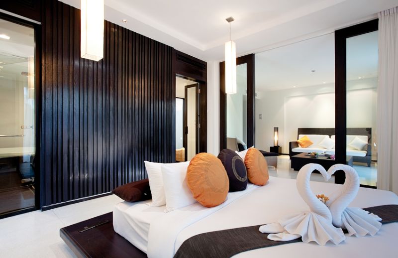 - 3 The Pool Villa (190 кв.м, 2-этажные виллы с частным бассейном, состоят из спальни и гостиной, есть 2 ванные комнаты; расположены ближе к пляжу, с видом на бассейн/море, макс. 3 чел.)