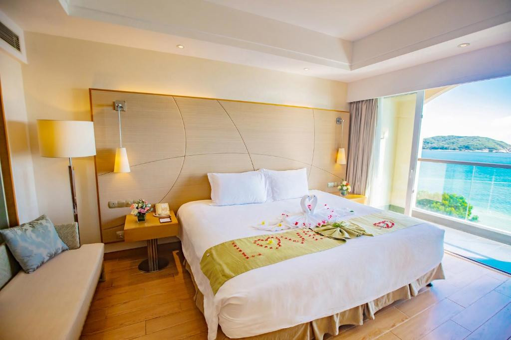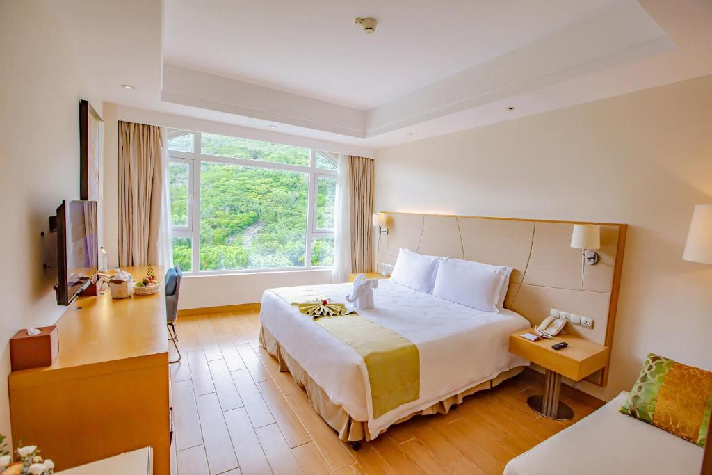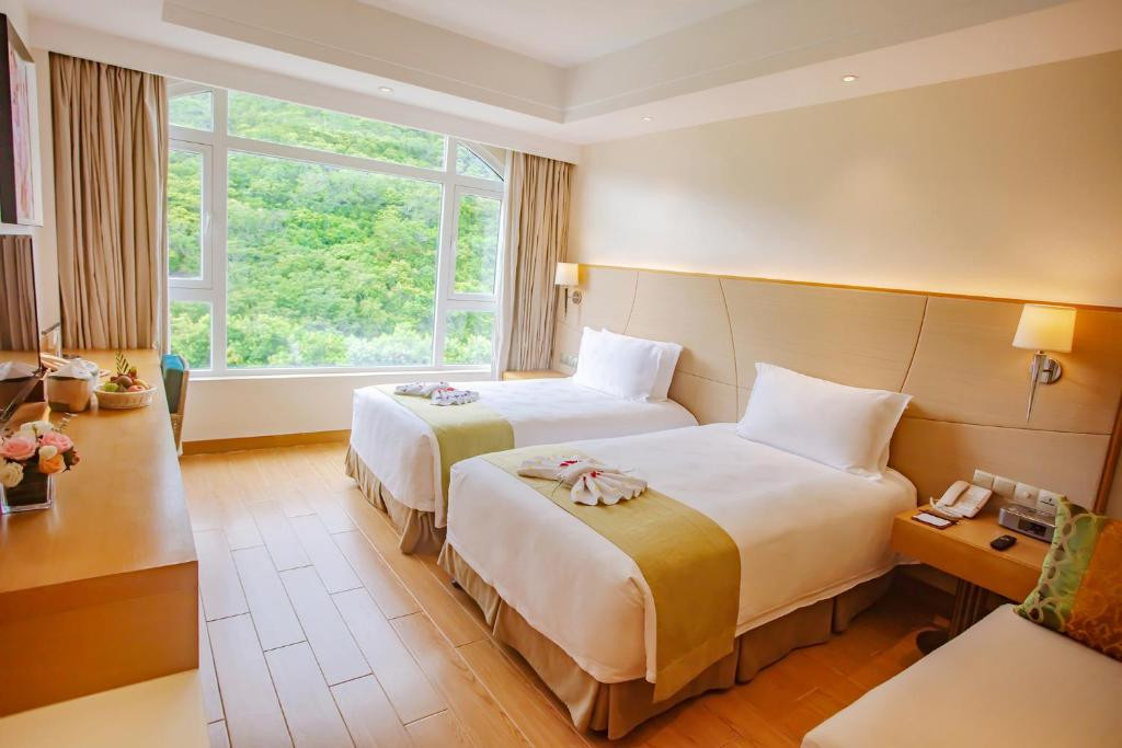 Старый отель, номера требуют ремонта. Сотрудники отеля все приветливые и отзывчивые, хоть и не понимают ни русский, ни английский, всегда стараются помочь. Жили на 6 этаже, очень красивый вид на море, 6 этаж - единственный где не курят. В номере есть все необходимое, чайный набор, утюг, гладильная доска, гели, шампуни. Ежедневно хорошо убираются. Сейф был, но сломался, спасибо что быстро пришли сотрудники, открыли, отремонтировали. В отеле с интернетом все сложно, он есть, но слабый, и вообще не работают все гугловские сервисы, только через ВПН. В отеле в основном отдыхали китайцы и русские. Очень спокойный и тихий отель, анимации нет вообще. Нам ее и не нужно было. На территории отеля много бассейнов, но они все очень мелкие, один глубокий - взрослому до груди. Китайцы не любят плавать, как мы поняли. Они приезжают на море полюбоваться красотами и пофоткаться. Если в море заплываешь немного на глубину, спасатели кричат, машут руками, поплавать спокойно не дают, переживают видимо). Пляж у отеля красивый, песочек белый, но муниципальный, поэтому видимо лежаков и зонтиков отельных на пляже не было, лежаки стояли только у бассейна, их было мало. Полотенца дают, но их всегда не хватало, не пожалела что брала с собой свои. На завтраки ходили почти перед закрытием, выбор был всегда. На ужине всегда были морепродукты: разная рыба, креветки, мидии. На стол ставится газовая плитка с кастрюлькой, вы сами все что хотите отвариваете. Необычно, но нам понравилось. Что не понравилось- сотрудников на ужине мало, и столы они убирать не торопятся почему-то. У отеля удобное расположение: рядом большой парк со стекляным и подвесным мостами, мин 10 хотьбы через небольшой парк до центра района с кафешками и магазинами. Отельный гид конечно предлагает разные экскурсии, мы ничего не покупали. Везде ездили сами на такси, они все по счётчику. Главное таксисту по карте показать куда едешь. Очень все интересно и необычно. В целом отдых очень понравился.