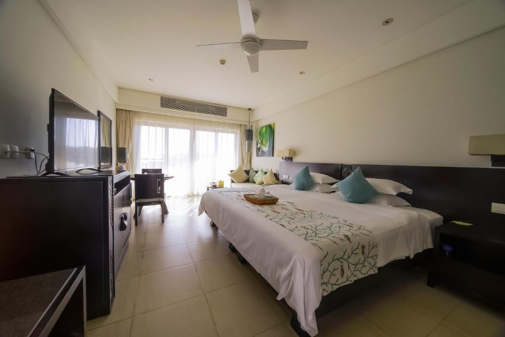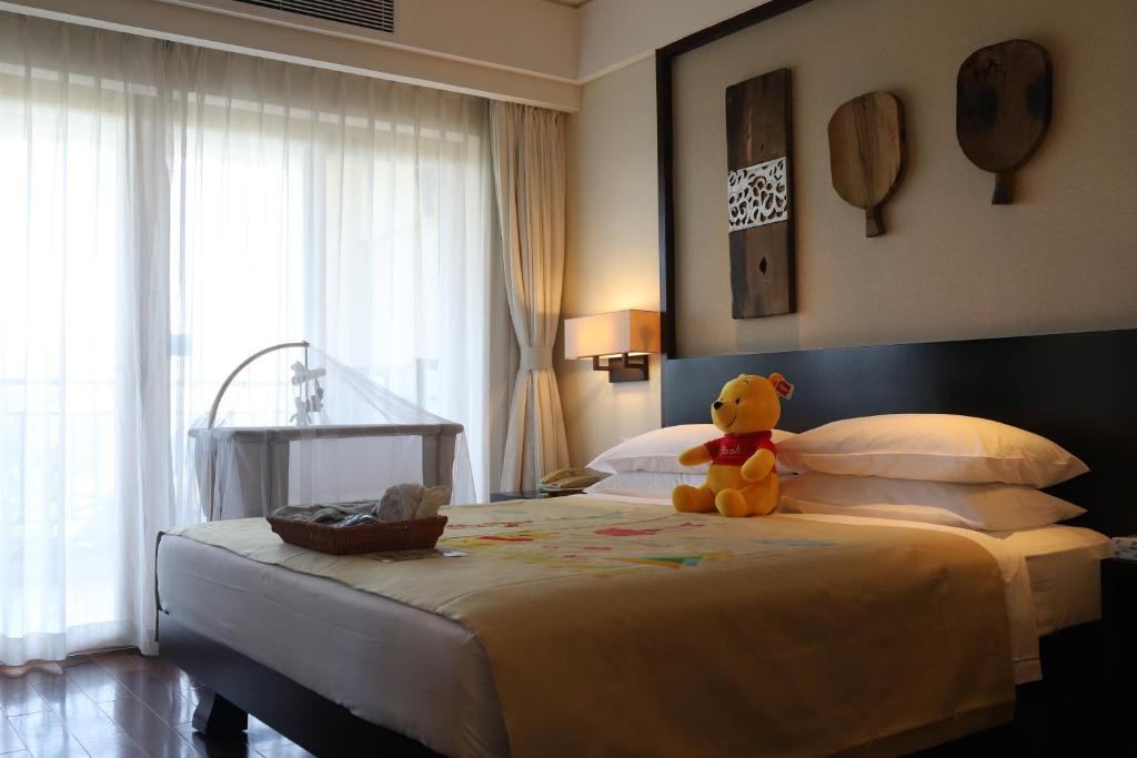 В центре бухты Санья-Бей, в 9 км от центра города Санья, в 6 км от международного аэропорта Sanya Phoenix, в 500 м от пляжа (на второй линии через дорогу).