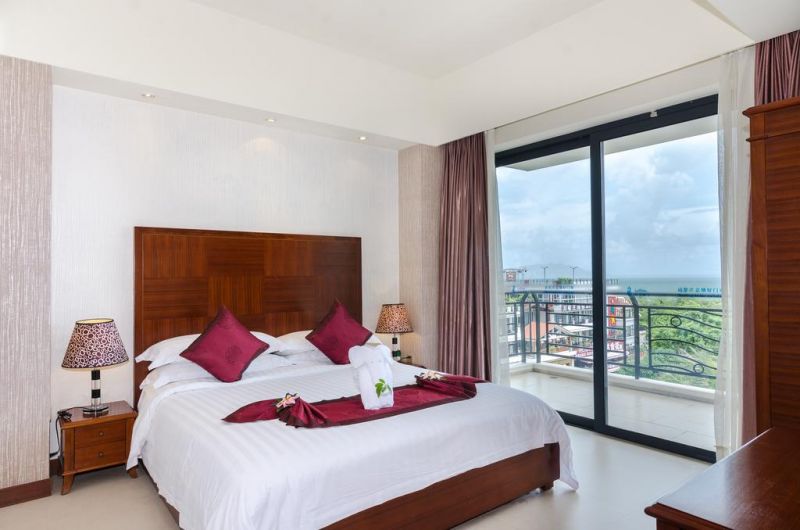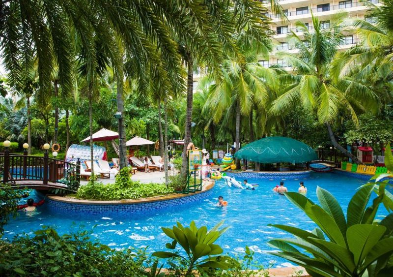 В бухте Санья-Бей, в 8 км от центра города Санья и в 6 км от международного аэропорта Sanya Phoenix, через дорогу от моря.