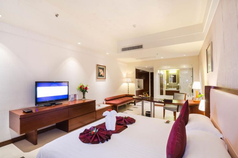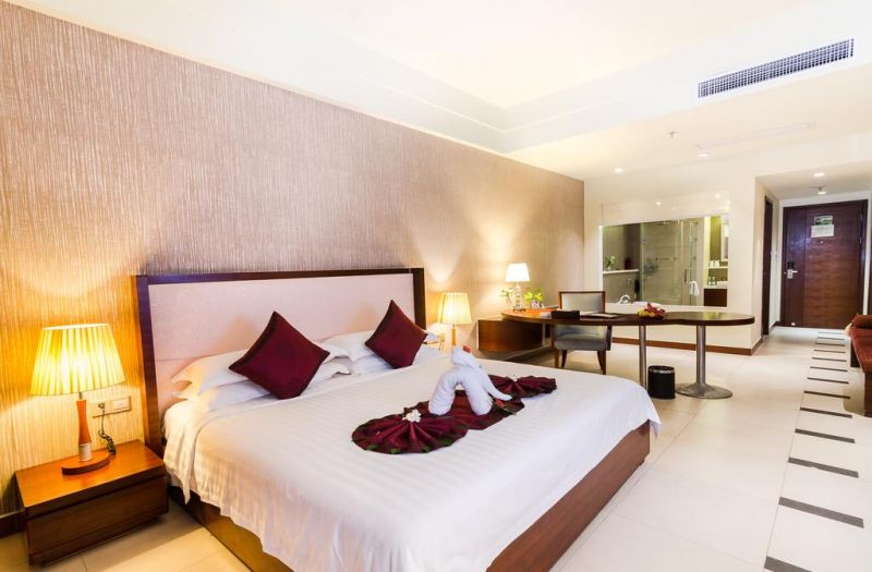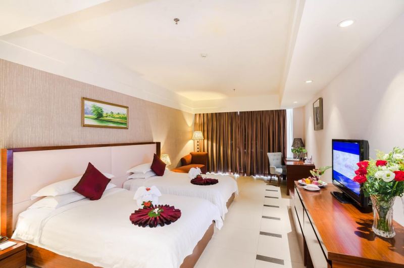 Заселили сразу, несмотря на то, что приехали в 5 утра. Единственное, заказывали одну двухспальную кровать, а в итоге получили две. Но это вина турфирмы. Мы не стали поднимать панику, просто сдвинули кровати. Номер хороший, большой, в одном месте были пошарпанные обои, но некритично. Ванная комната (душ, ванная, раковина, ну и туалет). Всё чистое. Номер убирали хорошо. На балконе стол и два стула. Отличный кондиционер, который работает, даже когда уходишь и забираешь карту. Территория небольшая и уютная, её вполне хватает. Море чисто, блох не было. Лежаков маловато, но найти можно. Так как все равно народ приход, уходит. Завтраки однообразные, поесть можно выбрать (рис, овощи свежие и тушёные, фрукты). Русских в отели мало, есть китайцы, да их тоже немного было, все приличные и спокойные. Вообще тихий очень отель, прям для отдыха. Море сразу через дорогу, 3 минуты и ты на море. Ездили в Дадунхай, не понравилось. Шумно, суета, движуха, русских много и детей орущих. Нет, я не против детей, но цель отдыха была прям отдохнуть от суеты и людей. Не пожалели ни капли, что выбрали именно этот отель. Если поедим ещё, то именно в этот отель. Экскурсии показались дороговато, при таких гидах, которые их проводят за такие деньги. Ничего не знают, словарный запас маленький, два слова связать не могут. Средняя цена экскурсии 300 ю. За одного человека. Вот это единственное, что оставило осадок. Отдыхали в октябре, море тёплое, температура воздуха была 32 градуса.