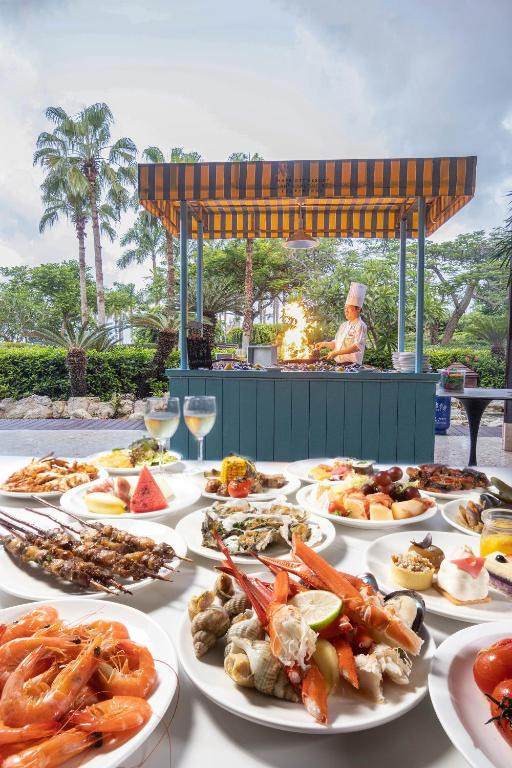 Отель не 5* ни разу! Даже на 4 наверное еле тянет. Общение персонала на китайском, на ресепшене еле на английском говорят, и то, переводчик в тему. Мы бронировали заранее раннее заселение, заплатили как за сутки - на 4 ых около 20 тыс. Через букинг, хотя наше заранее подразумевало за 7 часов до основного заселения. Приехать и за денежку договориться заранее заселиться - даже не рассчитывайте, они принципиально этого не делают , даже не смотря на присутствие множества свободных номеров. При нас ни одному такому человеку навстречу не пошли. Отель напыщенный, персонал считает себя выше Вас, надменное общение, могут послать гоу гоу и помахать ручкой, сказав не понимаю тебя, даже через онлайн переводчик на китайский. Только как видели моего мужа- сразу в испуге все решали. Другой вариант надавить на них, чтобы выполнили вашу просьбу- устроить истерику, при мне мужик так делал, сразу успокаивают и говорят окей кстати мужик этот в 16.20 не мог дождаться заселения в свой номер, с этим они маринуют, у нас один из номеров дали в 3 часа, а второй только с руганью, потому что не торопились его убирать. Гиды при отеле - никакие, чистые продажники, если не покупаешь у них экскурсии - помощи от них можно не ждать в других вопросах. Номера уставшие. Уборка конечно каждый день, но уборкой это тяжело назвать, пылесосят песок и крошки с пола, с ковра - не всегда. Постельное могут каждый день менять, могут 3 дня игнорить его замену) мы жили в конеектинг руме с ребенком, в одном из номеров на 4 день отдыха стало пахнуть то ли краской, то ли растворителем, причем ночью, очень сильно, что меня застала интоксикация, тяжело добилась переселения в другой номер, признали, что в отделе реновация до сих пор продолжается , и работы ведутся по ночам, так что имейте ввиду. Воду питьевую ставили каждый день. Завтраки тоже ну такие себе, фрукты не вкусные, из нашего привычного питания выбор мал, на вкус соответсвенно не совсем привычно, не вкусно по русски говоря. Отель хвалится ориентированностью на европейцев, якобы в рационе на завтрак присутствует колбаса и сыр - но есть их невозможно))) Спасались беконом, белым рисом и омлетом цены при отеле адекватные только на алкогольные коктейли, остальное- вери ту мачь, потратьте 2 минуты ходьбы до рыночка рядом с отелем, цены в 5 раз дешевле, хотя потратив еще 3 минуты на такси найдете рынок с едой , например кафе панда- там еще дешевле и вкуснее. Море конечно шикарное, песочек убирают, лежаков много, при нас хватало всем) бассейн классный, но как оказалось плохо дезенфицирован, ребенок напрыгался - на глазах появилась инфекция, лечили до конца отпуска в басик больше не ходили)) ну и в вечернее время китайцы там кишат, так что лучше конечно же - море )