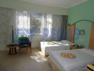 Отель состоит из главного корпуса (6 этажей) и трех малых корпусов (3 этажа), расположенных автономно. Всего номеров 191, есть лифты.