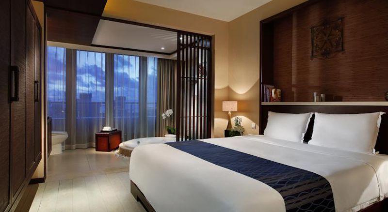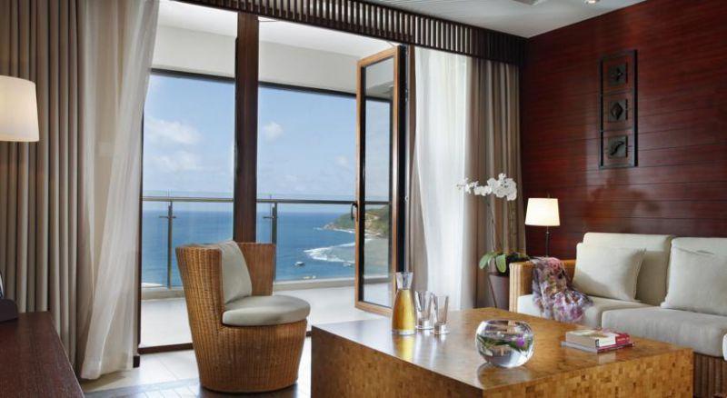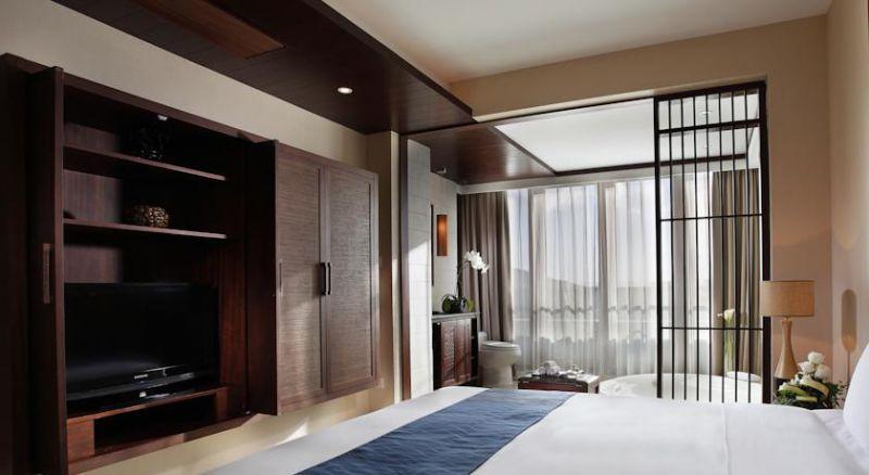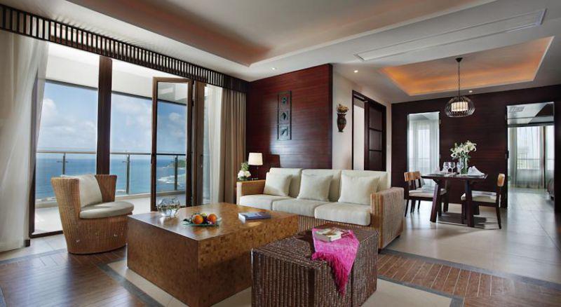 Отель удачно расположен в бухте Сяодунхай. Тихо и живописно. Все номера выходят на море. Огромные апартаменты. До Дадунхая 5 мин езды. На пляже мало народу и много пальм - это плюс большой.