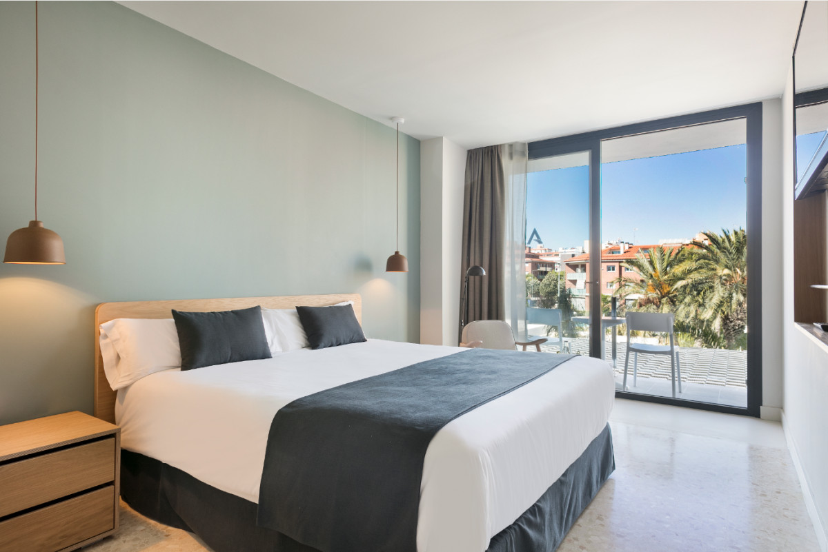 Расположенный в тихой зоне, неподалеку от центра Мальграт де Мар, этот элегантный отель принимает гостей старше 16 лет. Здесь вы можете рассчитывать на приятную романтическую атмосферу и спокойный релакс-отдых. К этому располагают и стильные номера, и прекрасное обслуживание в ресторане, и шикарные возможности для SPA. Отель принадлежит к известной цепочке AQUA, так что сервис здесь неизменно на высоте. Что касается пляжа, то прогулка до него совсем не утомительна: 150 м, включая подземный переход под железной дорогой.
