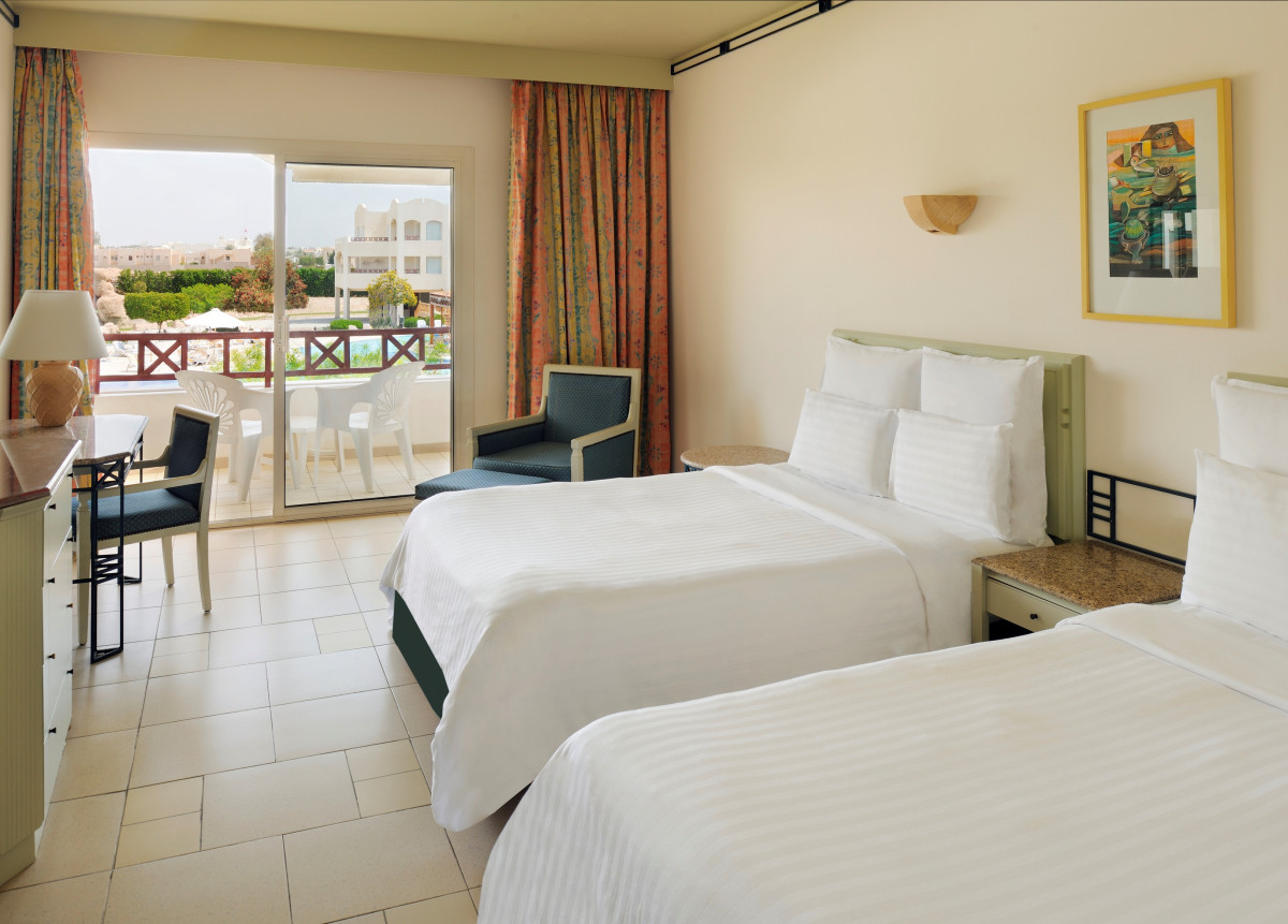 Отдыхали с семьей с 15.04 по 22.04.Вторая береговая линия. Ужасный отель. Начиная с ресепшна- приехали примерно в 8.40-9.00 -заселение с 13.00,на завтрак сказали без браслетов нельзя,максимум попить кофе(((хотя в этом «пансионате» никто даже и не смотрит на браслеты,приходи бери … Номер—сразу самый ужасный предлагают,ждут доплату наличными,ну ничего согласились не глядя,по итогу кондиционер не рабочий,сейф не рабочий,обстановка как в дешевом хостеле в Москве,ну ладно ..проглотили. Далее…«Столовая-закусочная»-по другому не назвать,тарифом AI даже и не пахнет,грязные кофемашины,на шведском столе постоянно бардак, пластиковые синие стаканы вызывают рвотный рефлекс,в основном зале шум от уборки посуды и постоянного движения тележек под управлением НЕОПРЯТНЫХ рабочих этой столовой,есть зона на улице возле бассейна…там тихо спокойно можно поесть вместе с местными воронами , которые видимо после еды «обгадят» эту зону вдоль и поперек,еда все 7 дней однообразная,различие только завтрак,обед и ужин.Стол на 4 человека не всегда представлялось возможным занять. Есть конечно и плюсы,но они к сожалению не покрывают минусы. - молодые заводные аниматоры в баре возле пляжа(первая линия),вечерняя тусовка после закрытия пляжа - море,пляж - район Наама-Бей - обед в баре на пляже (первая линия), благо можно пользоваться полноценно - сад на первой линии,очень ухожен. Повторюсь: все плюсы убивает прием пищи. В целом нужно сто раз взвесить,посещать данный отель или нет,тут каждому свое на мой взгляд если по адекватной цене, то только на первую линию можно вернуться….
