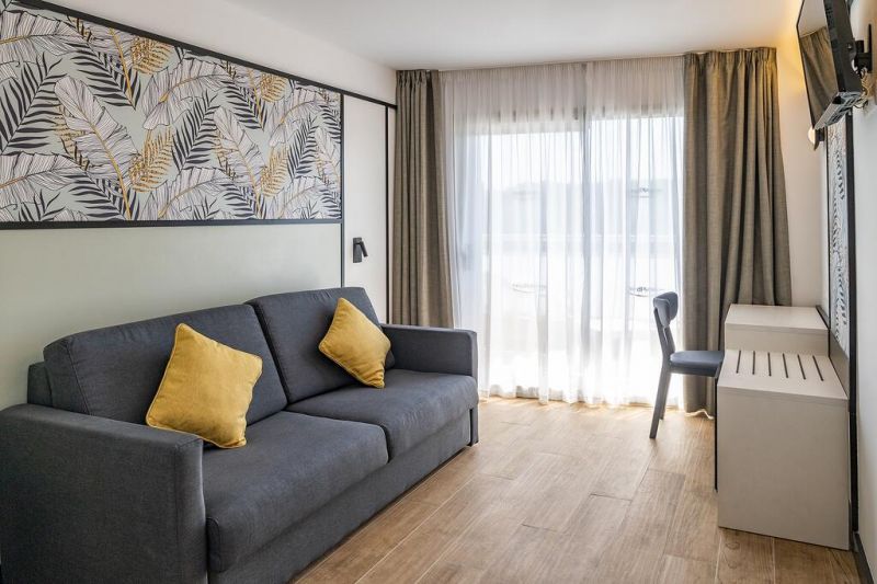 Была в сентябре 2018 года. Доплатила за расположение в корпусе с отремонтированными номерами и холодильниками, всем советую. Отель понравился. Кормили вкусно. Старались к ужину оригинально оформить столы. Недостатки: шум автобусов постоянно будил поздно вечером и ночью. Громыхала дискотека от рядом расположенного кемпинга. Номер выходил на дорогу и сосновый лесок. Запах сосны приятно радовал. При бронировании оставила пожелание о расположении номера. Это было выполнено. До моря минут 15. Но зато выбор пляжей: 4 штуки!!! До остановки 3 минуты: до Террагоны, Реуса, Ла пинеды. Купите карточку за 15 евро на 10 поездок.