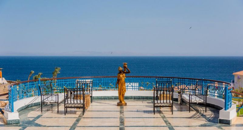 Вид действительно хороший. Работники стараются. Неплохой песчаный пляж. Вход в море со стационарного пирса. Кормят хорошо, на 4-ку. Номера уставшие, особенно санузлы. Пахло канальей, вопрос решался включением вентиляции. На мой взгляд это не 4-ка, но и не 3-ка. 3.5 скорее. Но он лучше, чем happy life, например. Много местных арабов, интеллигенция. Дайвинга в отеле нет.