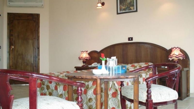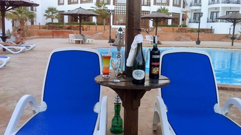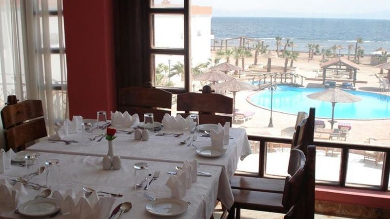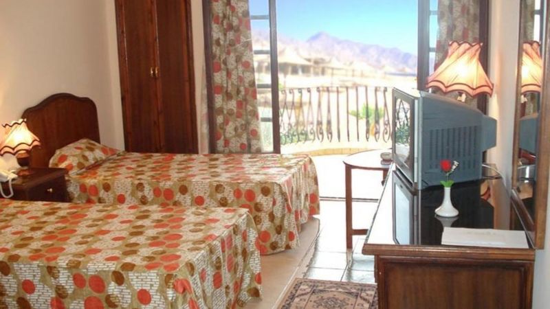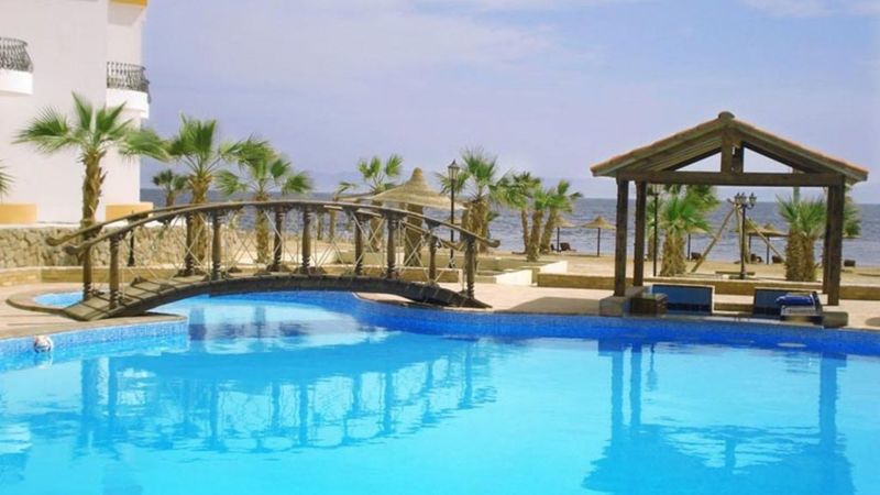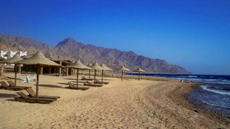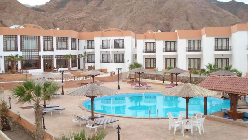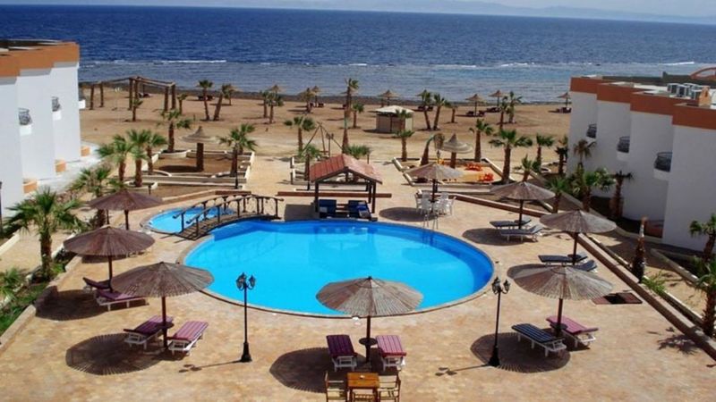 В 100 км от аэропорта Шарм-эль-Шейха, в Дахабе, на самом берегу моря (50 м от моря).