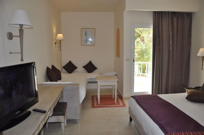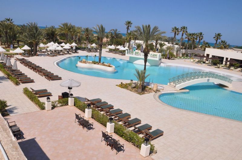 Отдых на Джербе подобен самому прекрасному сну. 2 недели райского наслаждения… Именно здесь я оставила частичку себя. И это будет мой якорь. Наше путешествие началось 28 сентября, беря путевки, переживали насчет погоды, оказалось неоправданно. Дождь был всего 2 дня. Но даже он не помешал нам получить удовольствие. В отеле есть крытый теплый бассейн! К середине месяца ничуть холоднее не стало. Улетали 11 числа – стоял зной! Природа великолепная! Раскидистые пальмы, белоснежный песок, голубая морская вода – эстетика бесконечная! Особенно закаты и рассветы… Территория отеля ухоженная, зеленая, уютная! Само здание не новое, конечно, но весьма приятное! Хорошие номера, в которых производили уборку ежедневно, также пополняли воду в мини баре. Раздельный санузел, ТВ с 2 российскими каналами, кондиционер, балкон, кровать и отдельная софа для отдыха. Поразительно, но за эти 14 дней мы почти не спали и не находились в номере – не хотелось терять драгоценное время! Ресторан внешне как столовая. Ничего особенного. А вот прекрасную кухню хочется отметить. Шеф-повар Салим баловал своими изысками. Креветки, кальмары, каракатица, мидии, различная рыба (дорадо, форель и пр.), телятина, говядина, индейка, курица, всевозможные овощи, фрукты (персики, сливы, виноград, яблоки, финики…), восточные сладости, паста, макароны, сыры… На завтрак блинчики и яичница. Все очень вкусно! В ресторане алякарт – рекомендуем именно рыбную кухню! Правду пишут, что попадаются не совсем чистые тарелки. Но это скорее исключение! На столах также оставались остатки еды от предыдущих посетителей. Мы просили официантов менять скатерти, что они оперативно делали. Из минусов – иногда ждали столовые приборы по несколько минут. И, к сожалению, на весь отель было только 3 утюга, которыми так и не удалось воспользоваться. (( Персонал доброжелательный, старается помочь. По-русски не говорят. Хотя, обещают начать учить. Есть детский мини клуб, но там детям было скучно. В основном ребята собирали ракушки, строили замки, купались на море или в бассейне. Очень не хватало командных задорных игр. Каждый вечер детская дискотека. Ближе к полуночи начиналась взрослая в баре за бассейном. Очень веселая. Туда приезжали ребята из других отелей и местные. Также несколько раз был вечер караоке, 1 раз тунисский национальный. Алкоголь до 00 часов бесплатный – вкусное вино (белое, красное, розовое), приличное пиво, мартини, ром, коктейли – все как нужно! Также есть бар на пляже и у бассейна. Между основными приемами пищи всегда есть возможность подкрепиться вкуснейшей пиццей, блинчиками, тортиками, фруктами. Выражаем огромную благодарность управляющему отеля – Ахмету. Невероятный мужчина! Очень гостеприимный и веселый. Анимация ненавязчивая. В этом направлении стоит поработать, так как из всего штата отмечаем только 2-х ребят. Но они очень крутые! Привет любимому аниматору Тито – видно, что человек занимается любимым делом! Шефу аниматров Каису – поцелуи и теплые обнимашки! Аквааэробика и латинские танцы позволили мне остаться в отличной форме! Спасибо вам ребята!!! Не понравилась работа Ирины (гид Пегаса), сказала, что на острове есть только 1 аптека и отправила нас в самый дорогой магазин Корфур. Не тратьте на это время. Лучший шопинг на рынке в Медуне. Везут в основном оливковое, органовое, кокосовое масла, фин