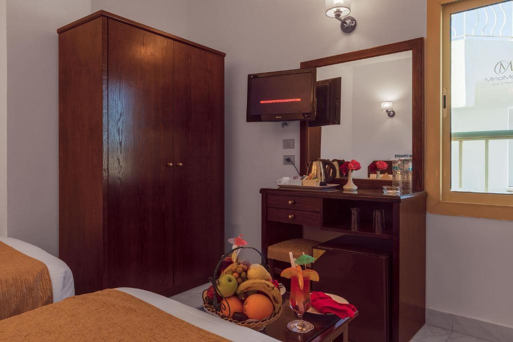 В Египте отдыхала в первый раз с 27.06 по 06.07, отдыхом осталась в целом давольна. Отель тенят скорее на 3. Территория очень маленькая, номера не большие, мебель старенькая, но номер убирали каждый день, персональ старается, на территории чисто. Есть 4 бассейна, водные горки, море рядом, заход не очень есть камни, но их видно и можно легко обойти. Море чистое, есть рыбки. Пляж не большой, но место для купания хватает. Лежаков маловато надо занимать рано утром. Кормили не плохо, каждый день была рыба, мясо, курица, много сладостей, вкусная выпечка, голодными точно не останетесь. Есть три ресторана, китайский, итальянский и ресторан на пляже. На пляже работает бар, дают мороженое. Отель находится в самом центре Хургады на оживленной улице Шератон, много магазинов, есть где погулять вечером. Отел скорее не для прихотливых туристов. На отдых нужно всегда ехать с хорошим настроением и не искать не достатков. Если хотите шикарного отдыха нужно ехать в дорогие отели. Цена и качество отела Минамарк соответствует заявленному.