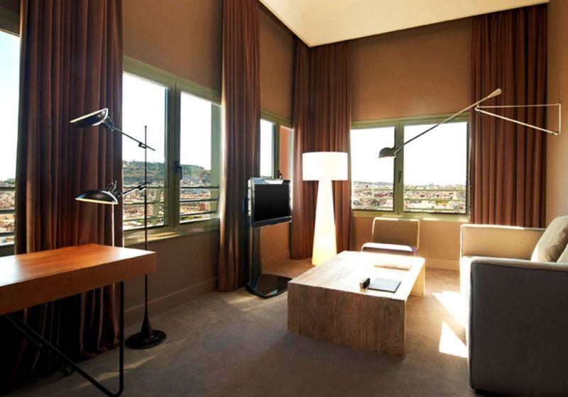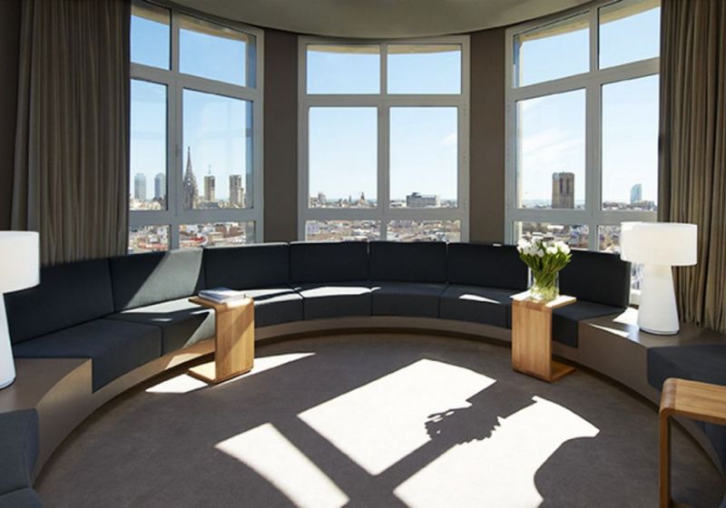 Panoramic Suite (87кв.м., макс.3 чел., расположен на 9ом этаже отеля, круговая гостиная с панорамным видом на город, 2 террасы, отдельное офисное помещение с большим письменным столом, обеденный стол на 4х человек. Может быть соединен с другим люксом. )