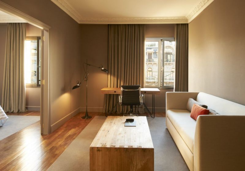 Prestige Suite (55кв.м., двухкомнатный двухместный люкс, спальня с двухспальной кроватью(2х2м), гостиная с диваном и видом на Ла-Рамблас)