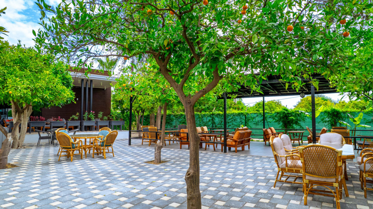 территория небольшая, очень красивая, кушать в мандариновом саду- бесценно! Номер дали обновленный. Мебель, сантехника не ушатанная, кондей рабочий. Придраться не к чему. С едой скудненько, выбор блюд очень мал, но вкусно. Особенно грустили на завтраках. Яичница/ оладьи- весь выбор, сыр и колбаса турецкие (есть невозможно), 2 раза был греческий йогурт. Алкоголь: пиво, вино, джин. Если не стоит километровая очередь- делают коктейли. Бармены не жмоты, дают сколько хочешь, а не по 2 стакана в руки, как во многих отелях))) Пляж: идти 10 минут, автобус ходит раз в час с 10 до 17. Лежаком мало, они без матрасов, пляжные полотенца тоже не дают, нужны свои. Раньше 8 утра забить лежак не удастся, они в стопке под замком. Сам пляж довольно грязный, много окурков(((( На пляже есть мини-бар. Лимонады, соки, пиво. Про Гейнюк: делать нечего совсем, гулять негде. Только по торговым рядам. В целом, в этом бюджете очень неплохой. Про уборку: убрались 1 раз после нашей просьбы, с этим не запариваются.