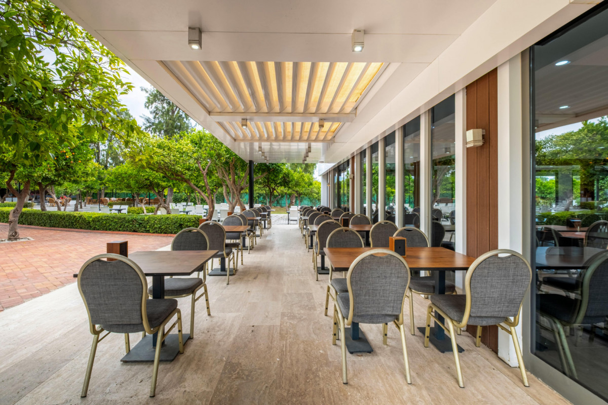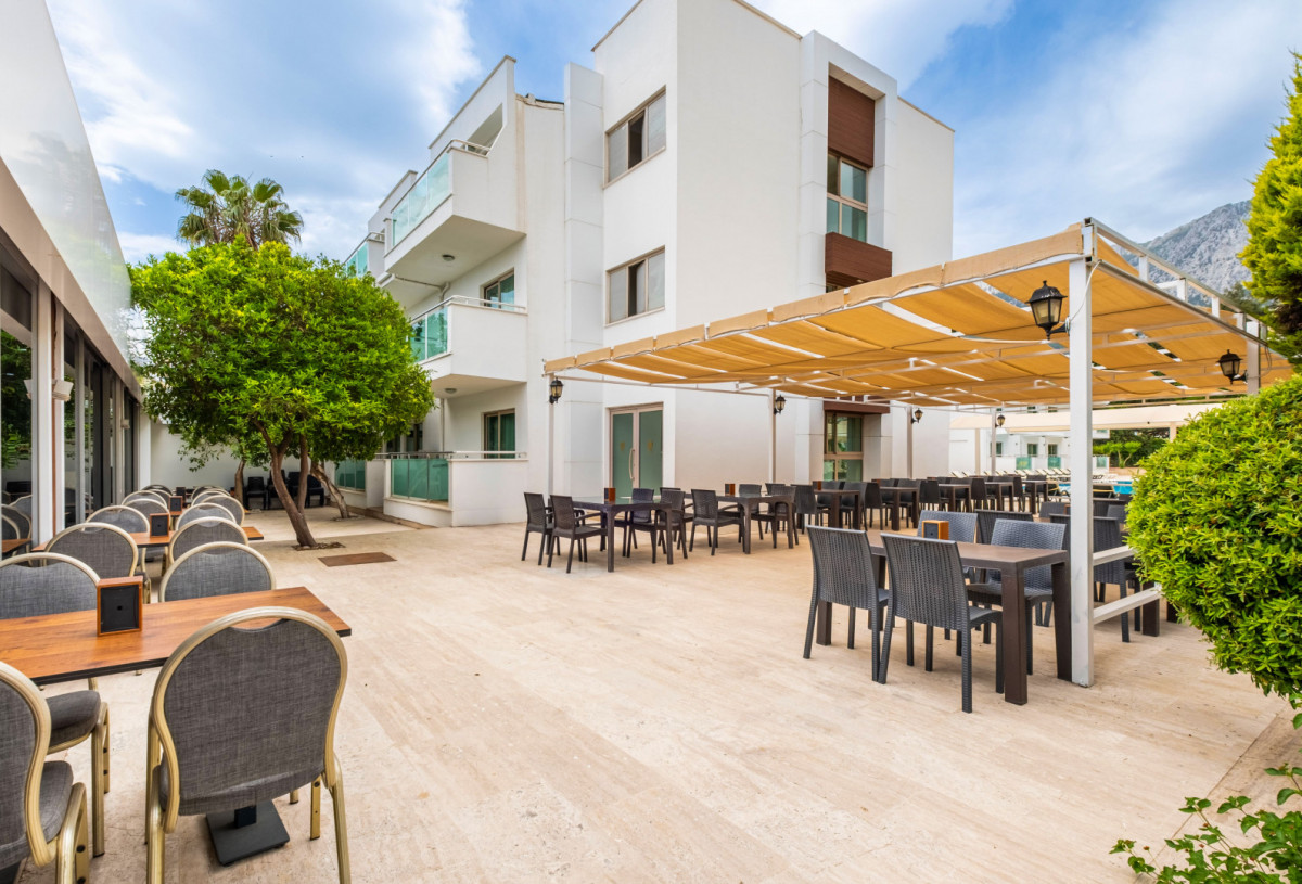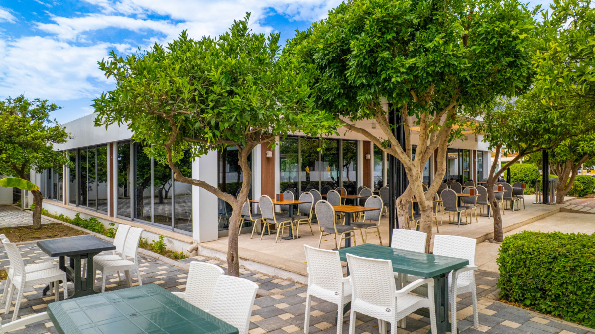 Доброго дня! Отдыхала в данном отеле с детьми в августе. Отдыхом осталась довольна. Приехали поздно, заселили нас на 1 этаж с видом на бассейн, а очень хотелось с видом на горы, поэтому мы вежливо попросили утром нас переселить и всё получилось. Номер хороший, чистый, все работало. Территория отеля не большая, но все в зелени. 2 бассейна, ресторан. Вроде бы лежаков мало у бассейна, но всегда я находила свободный. В ресторане также казалось столов мало, но их много вокруг ресторана. Завтрак слабенький, обед и ужин нормальные, днем еще готовили лепешки, была картошка, нагетсы, вобщем голодными не были и все вкусное, овощи приготовленные по-разному, мясо индейка, курица, говядина и на углях и жареное и тушеное, рыба, салаты, зелень, оливки разные, соленья, из фруктов арбуз, дыня, виноград, бананы.Из сладкого много всяких пирожных. (Мороженого нет). Проблемы с вилками (их иногда нужно было ждать) и периодически летающие мухи немного напрягали. Была анимация каждый день (водное поло, акваэробика, зумба, пенное в бассейне, пенная дискотека, детская анимация, караоке шоу, ещё приезжали файер и на стёкла вставали, может ещё что-то было, мы не на все ходили).На территории ещё есть кальянная, хамам, детская площадка. Горка работает 2 раза в день по 2 часа. До пляжа надо идти... минут 10 если быстро, но мы застревали в магазинчиках))). Пару раз ездили на бесплатном трансфере, ехать минута-две. Сам пляж не очень чистый, все портят окурки разбросаные, но море шикарное, чистое, тёплое. Красиво сочетаются море и вид на горы. Лежаков мало, но опять же находила. Полотенец не выдают. Когда выбирала отель ожидала худшего, но к счастью всё приемлемо и отдых удался.