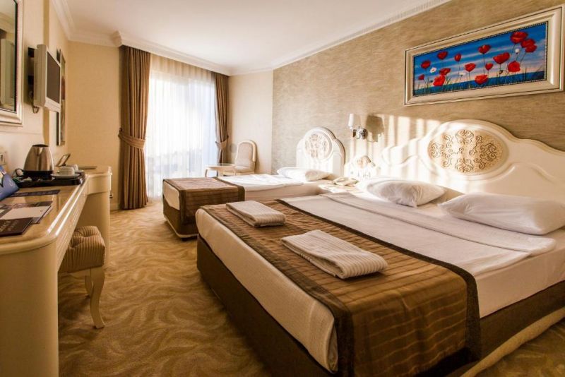 Если бы можно было поставить минус 10, поставил бы. Никому не рекомендуй этот отель. Г***о полное. Приоритет немцы и поляки. Русских не замечают. Еда одна и та же каждый день. Что не съели на завтрак, в обед дают, а потом и на ужин. Воду в бутылках нет от слова совсем. Типа кулер стоит, ито в 2-х местах всего, в свои бутылки наливаю. Анимации 0, в 23 часа даже разливного пива не найти. После 21.00 крошки даже поесть не найти. В отеле туборг в бутылке платно, 7 евро, мигрос 100м 70 лир. Стрясли 25$ на нормальный номер с видом на море и крепость, хотя в ваучере написано вид на море, в начале 50$ просил, сторговался до 25$. Короче на одного отель пойдет. Но тут с детьми отдыхают, вешаются. Сервис 0 во всех отношениях.