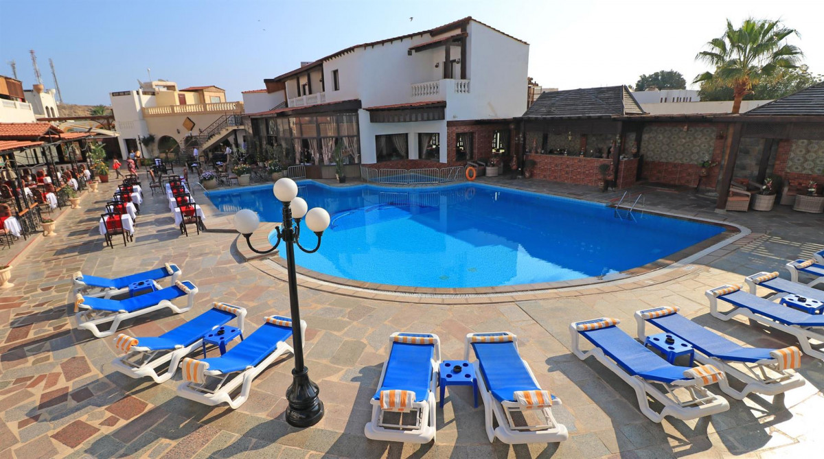 В настоящее время отдыхаем в этом отеле. Купили сюда тур, т.к. хорошие отзывы и отдыхающие посещают пляж отеля Гафи. В целом отель не плохой, но мы были очень удивлены, когда нам сказали, что пляж отеля Гафи закрыт для отдыхающих нашего отеля. В первый день нашего отдыха, благодаря нашему обаянию, удалось уговорить охранника пляжа Гафи пропустить нас на пляж без пропуска. На пляже солнечно, безветренно, песчаный вход в море, дальше много разнообразных рыбок. На второй день такой номер не прошел. Охранник сказал: или предьявите пропуск, или платите по 5 долларов с человека за одно посещение пляжа. Пришлось ехать на второй пляж Калимара. На этот пляж ехали на маленьком, переполненном автобусе 12 мин. На самом пляже дует сильный ветер, море по щиколотку до самых буйков, потом бездна, рыбок нет. Вопщем мы пошли обратно в отель. От пляжа до нашего отеля идти 30 мин. Все туристы в отеле возмущены этим фактом. Лично мы ругались со старшим менеджером и представителем Пегаса, но те ни чем помочь не смогли. Говорят, что пляж отеля Гафи закрыт для отдыхающих нашего отеля! Пришлось плавать в бассейне! Позвонили представителю Пегас, чтобы переселил нас в отель Гафи. Мы же приехади сюда, чтобы поплавать в море и полюбоваться рыбками, а не плавать в бассейне! Сидим ждем, как Пегас решит эту проблему! Или он может только торговать дорогими экскурсиями!?